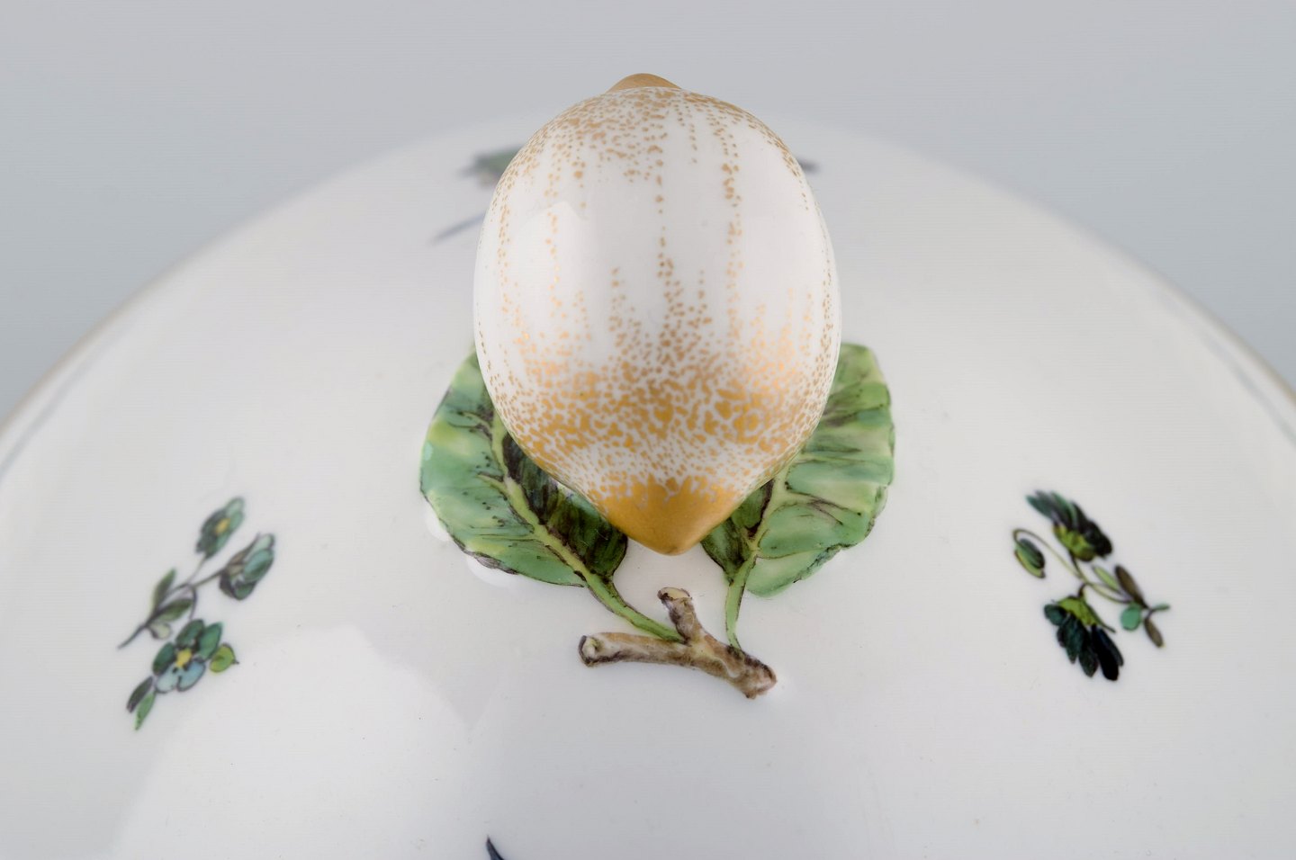 Royal Copenhagen lågterrin i håndmalet porcelæn med fuglemotiver og gulddekoration. Tidligt 1900-tallet. Måler: 27,5 x 15,5 cm. I flot stand. Stemplet. 2. Sortering.