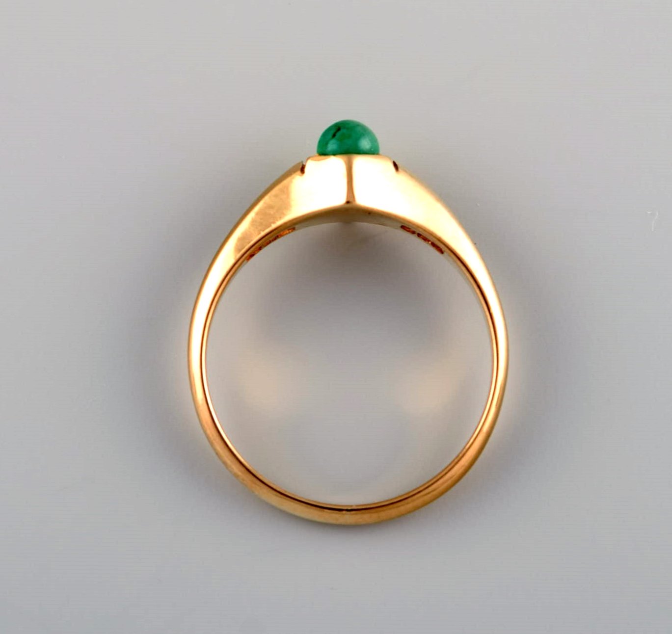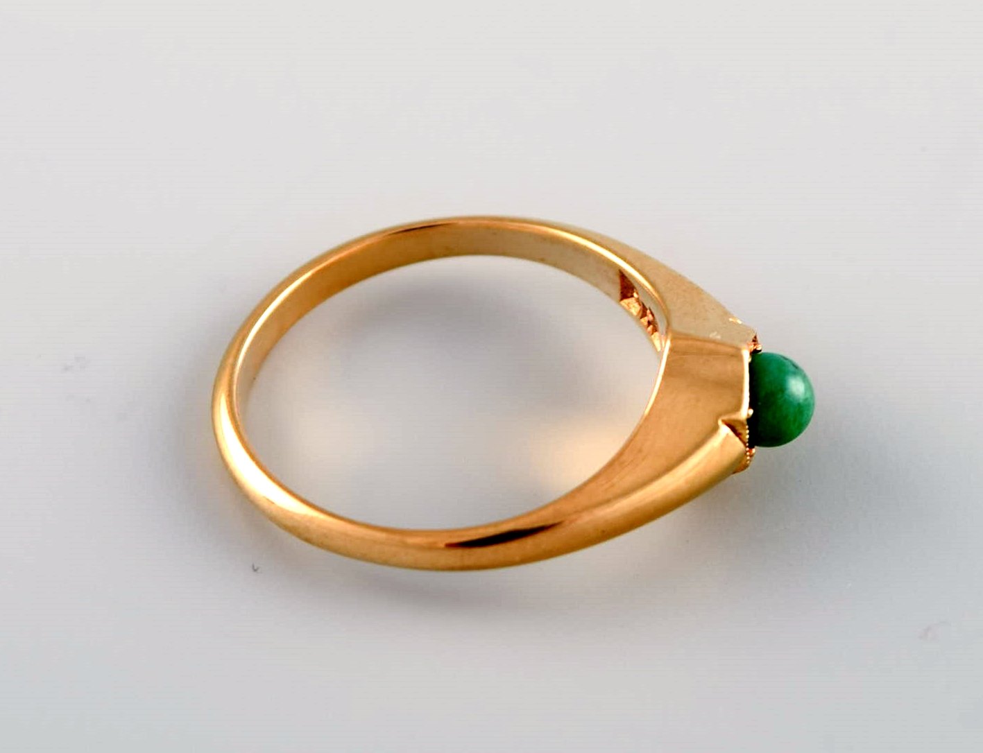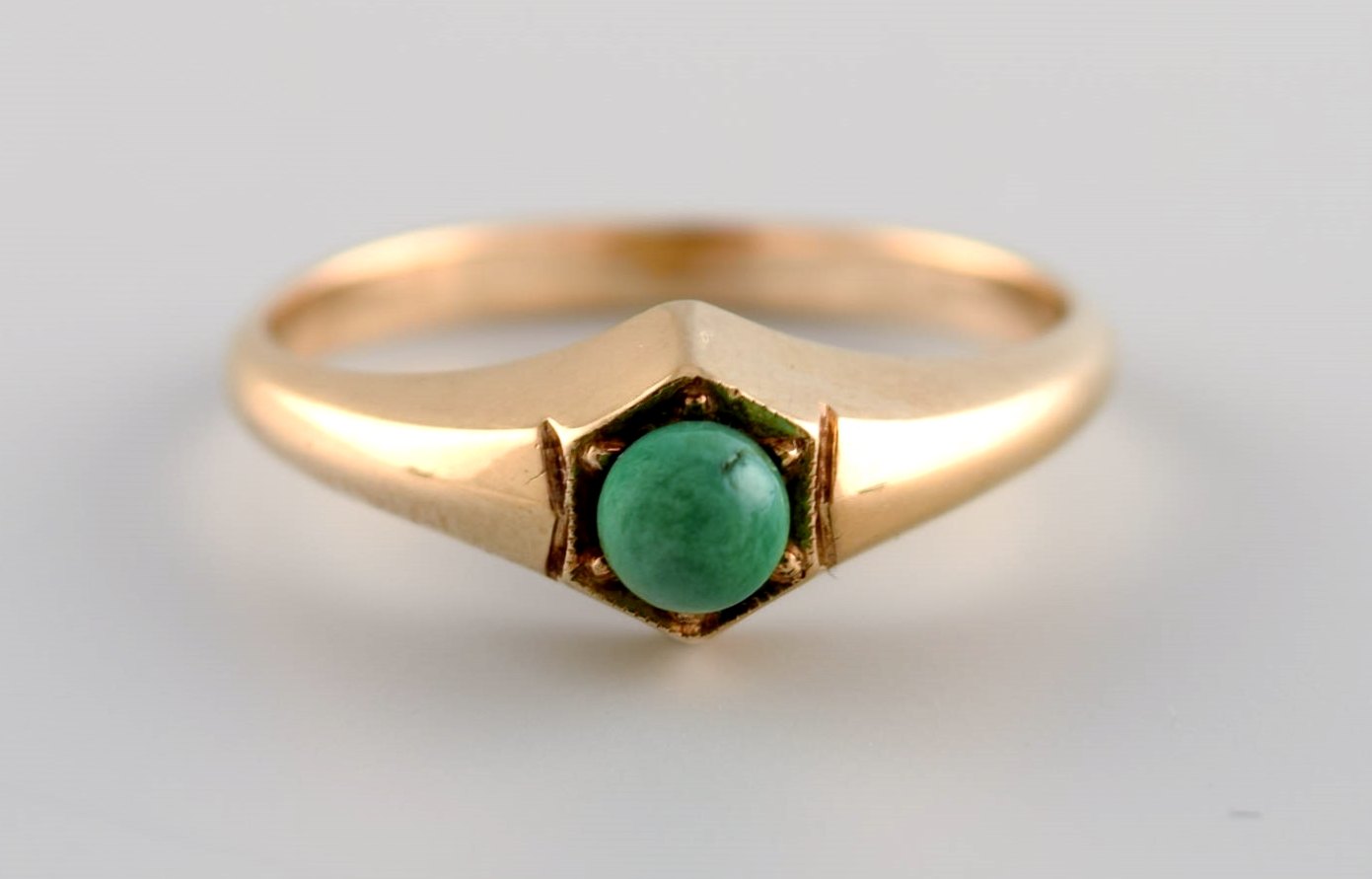 Bræmer-Jensen, Denmark (1957 - 1991). Vintage art deco ring in 14 carat gold adorned with green malachite. 1950s / 60's.