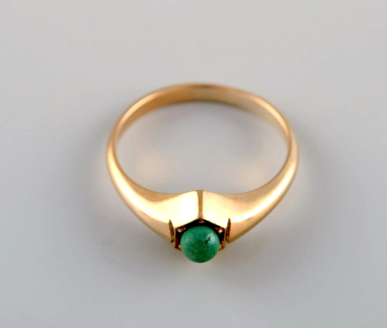Bræmer-Jensen, Randers (1957 - 1991). Vintage art deco ring i 14 karat guld prydet med grøn malakit. 1950/60'erne.