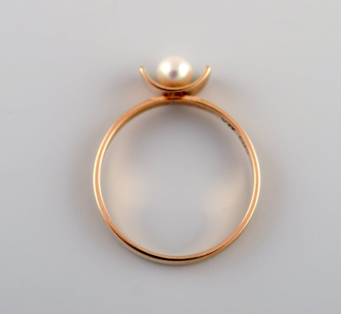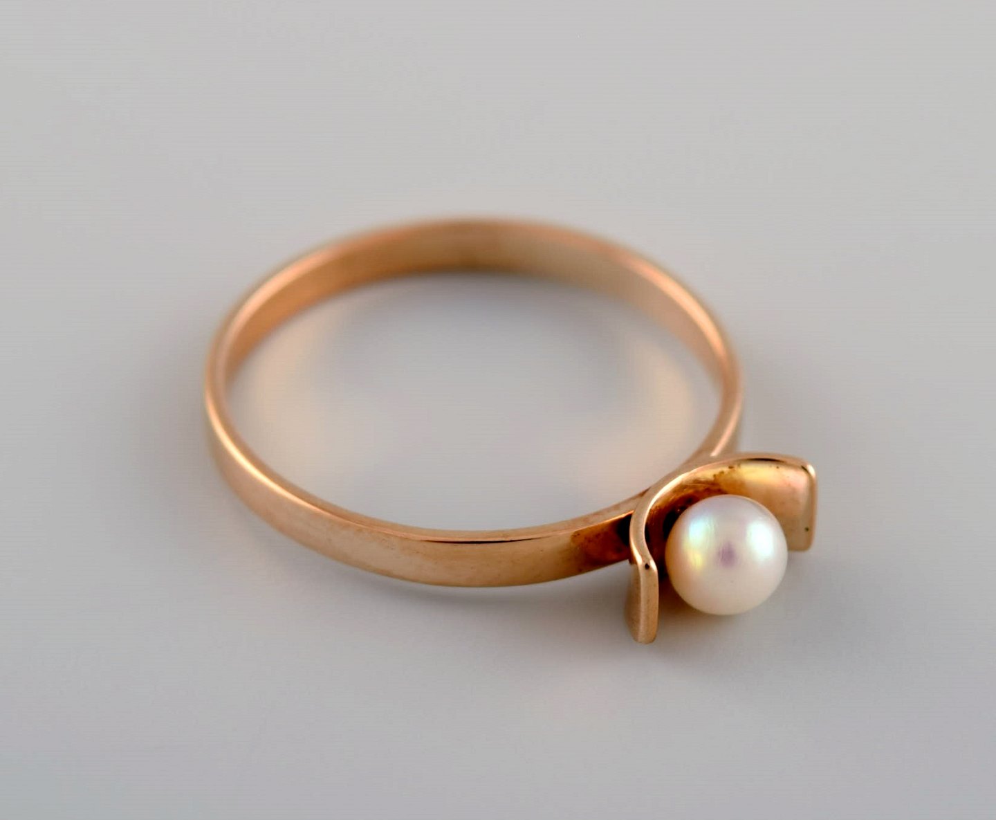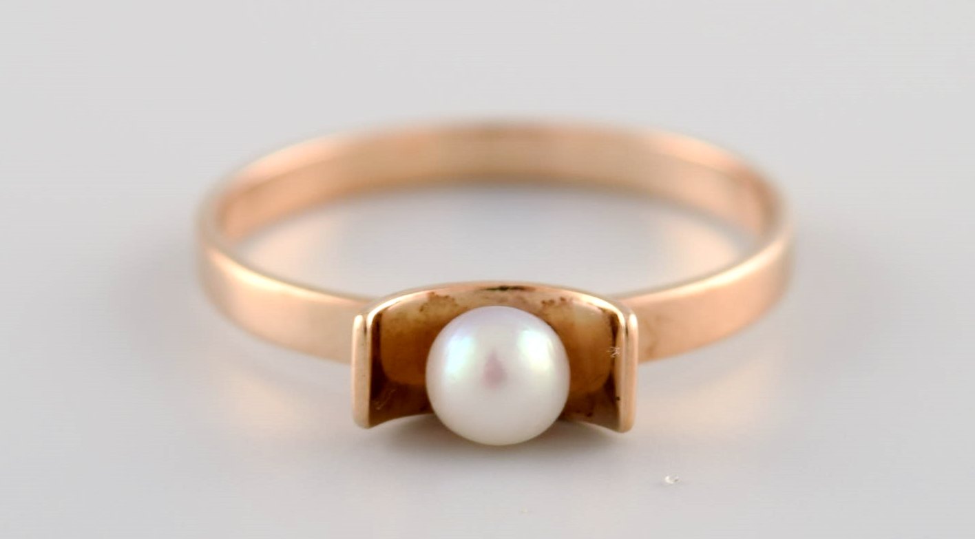 Viggo Wollny, Copenhagen (1921-73). Vintage art deco ring in 14 carat gold adorned with cultured pearl. 1930s / 40s.