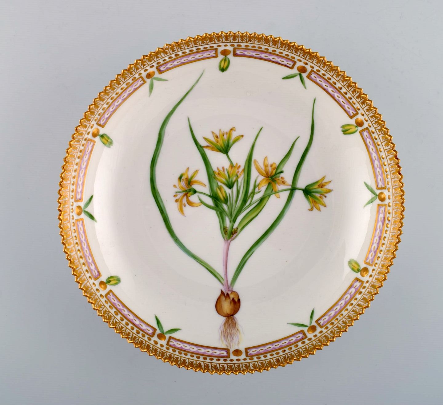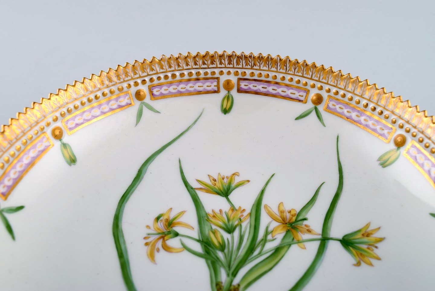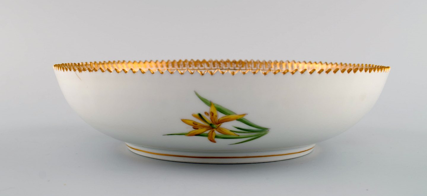 Royal Copenhagen Flora Danica porcelain bowl decorated in colours and gold with flowers. Model number 20/3503. Measures: 20 x 5 cm. 1 st. factory quality. Perfect condition. Stamped.