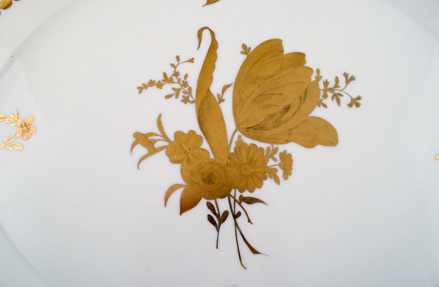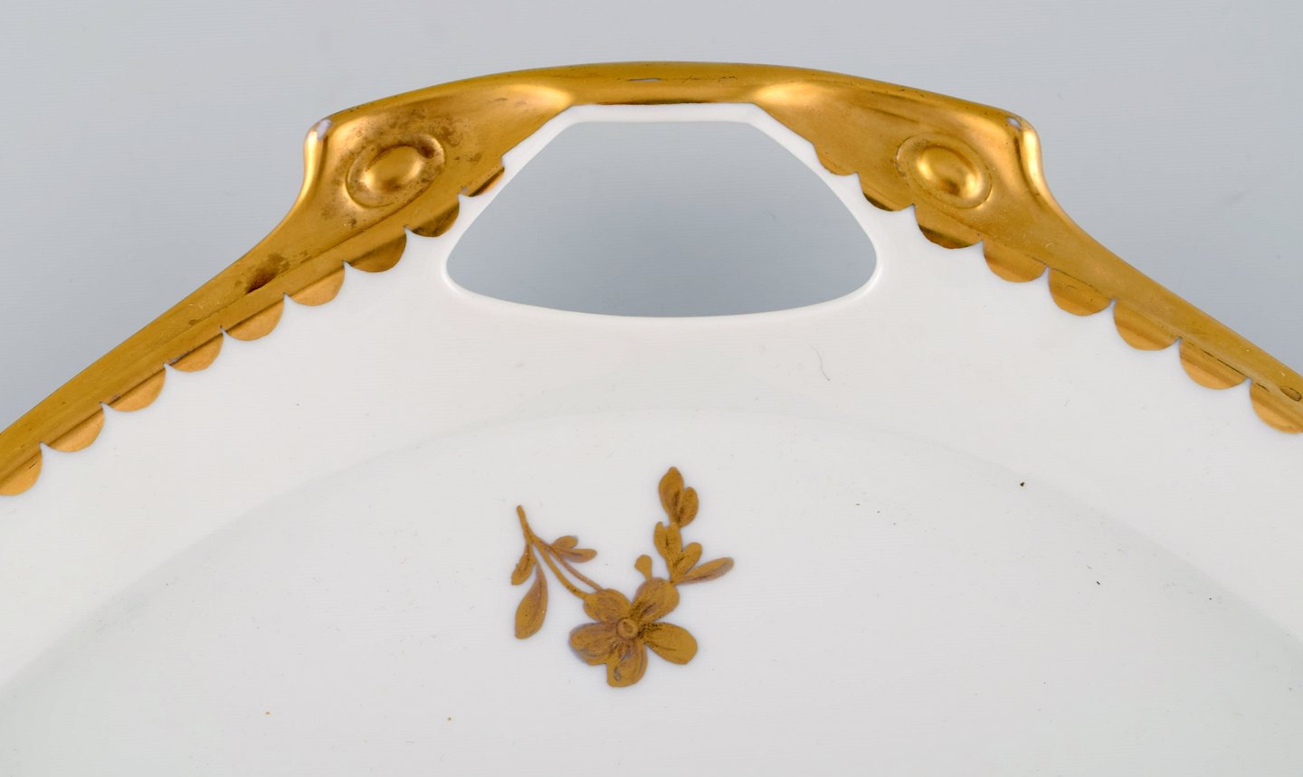 Large Rosenthal serving tray in gilded hand-painted porcelain. Mid-20th century. Measures: 49 x 34 cm. In very good condition. Stamped.