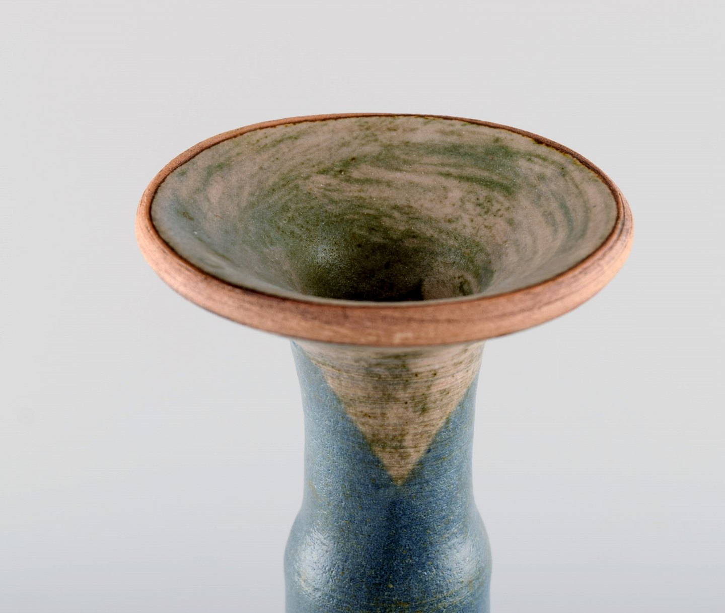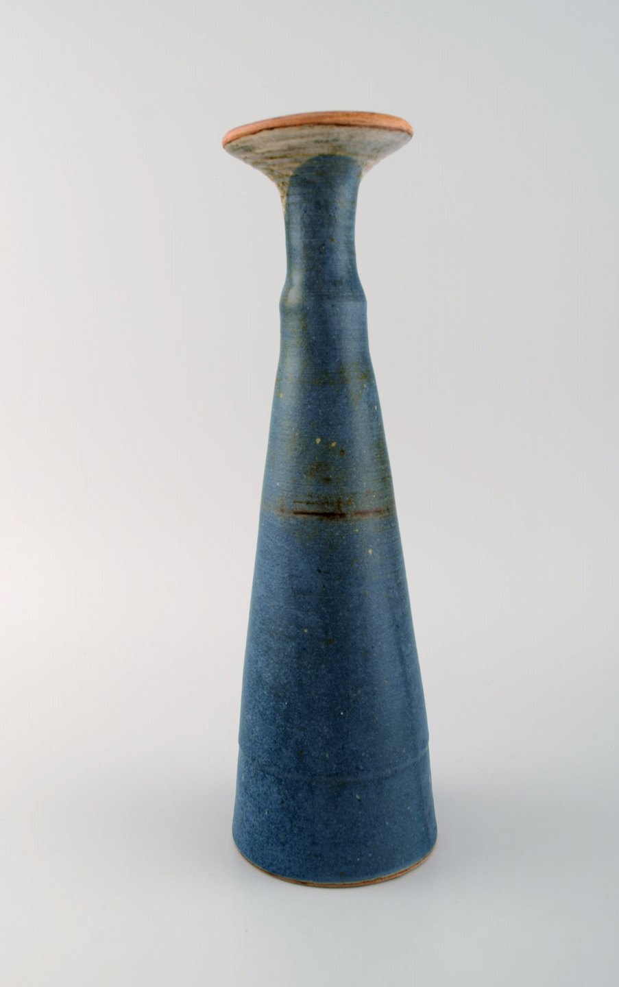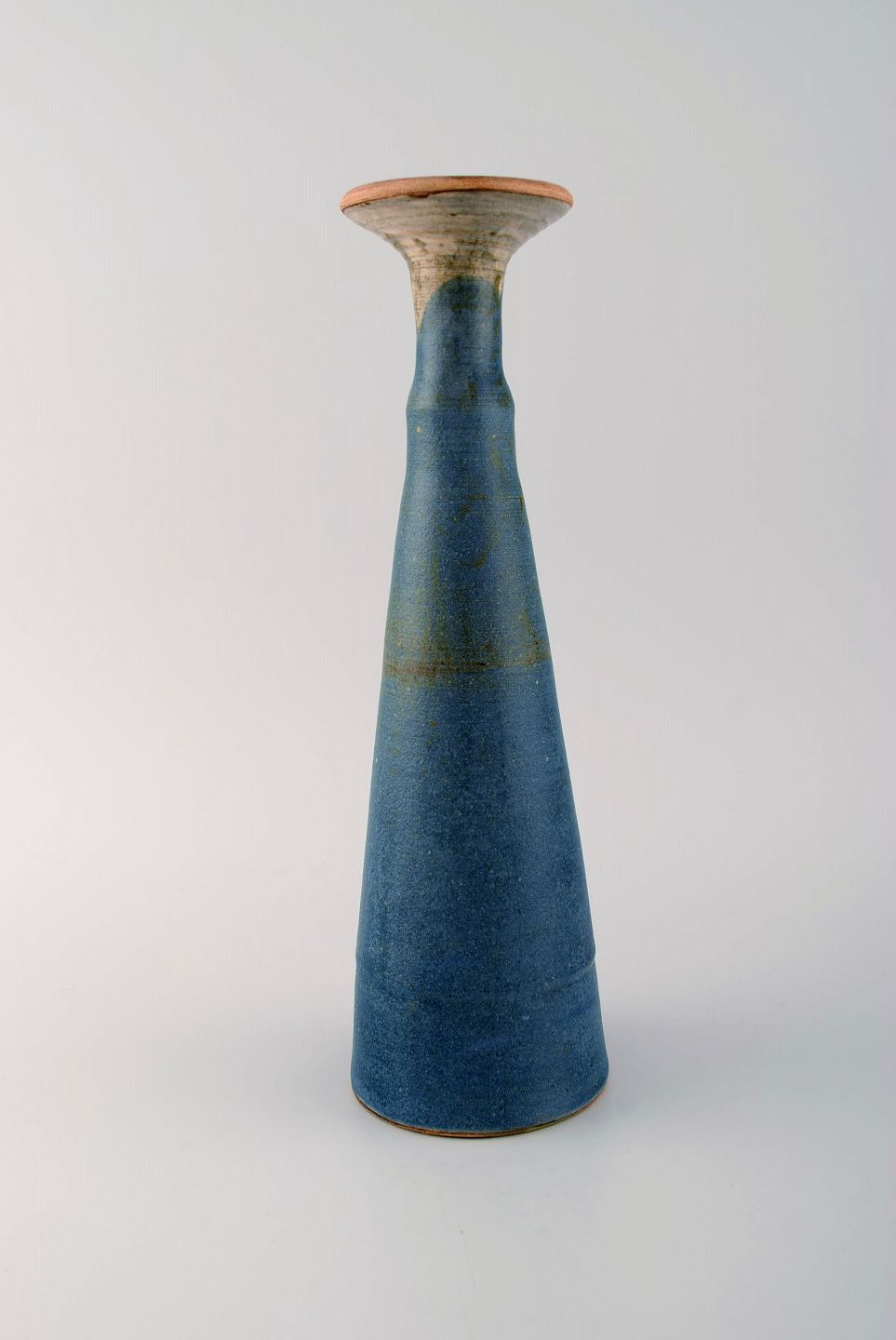 Europæisk studio keramiker. Stor unika vase i glaseret keramik. 1980'erne. Måler: 31 x 9,5 cm. I flot stand. Signeret.