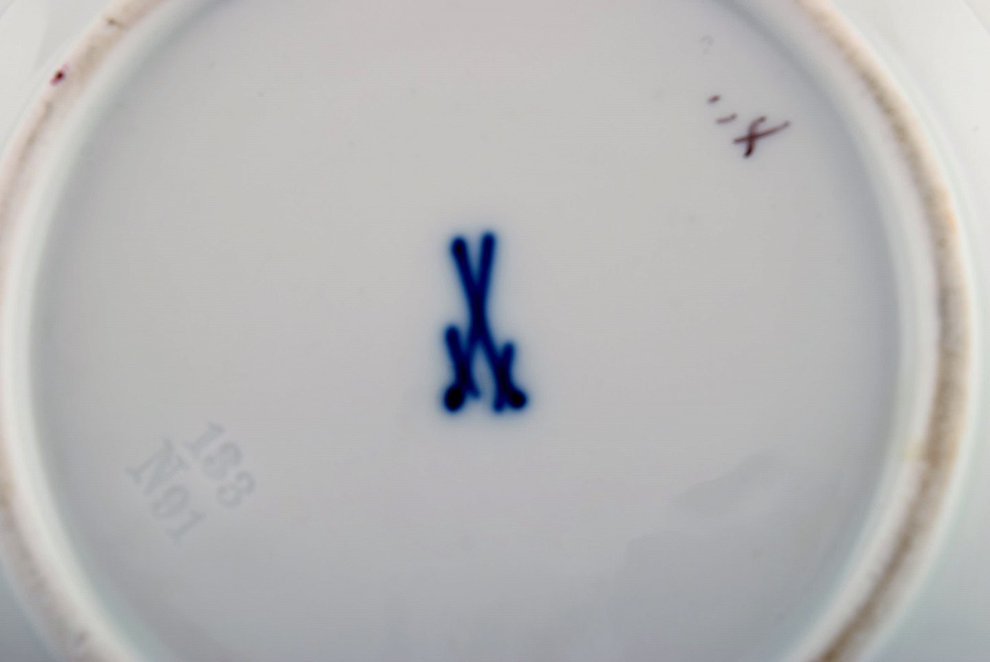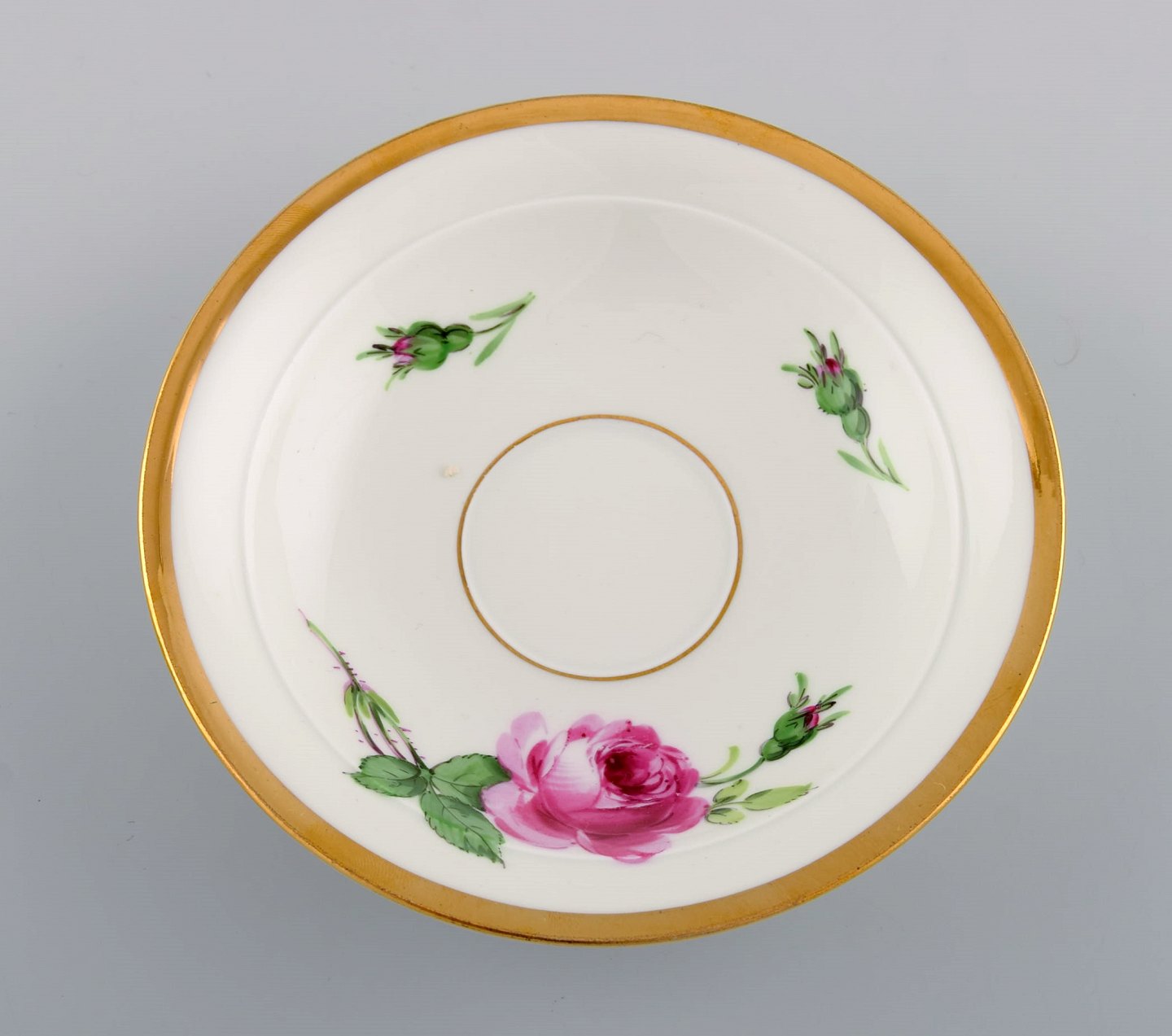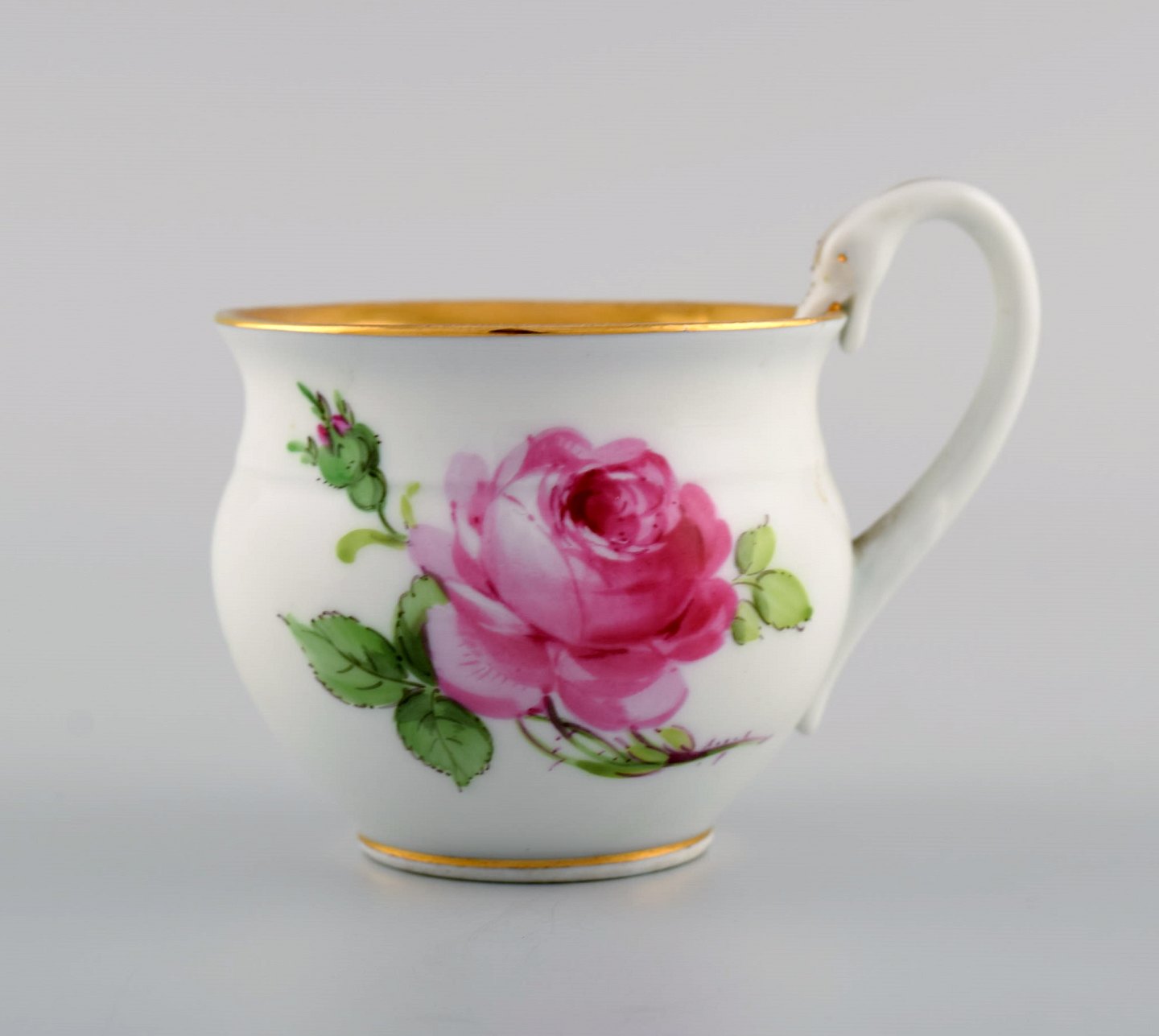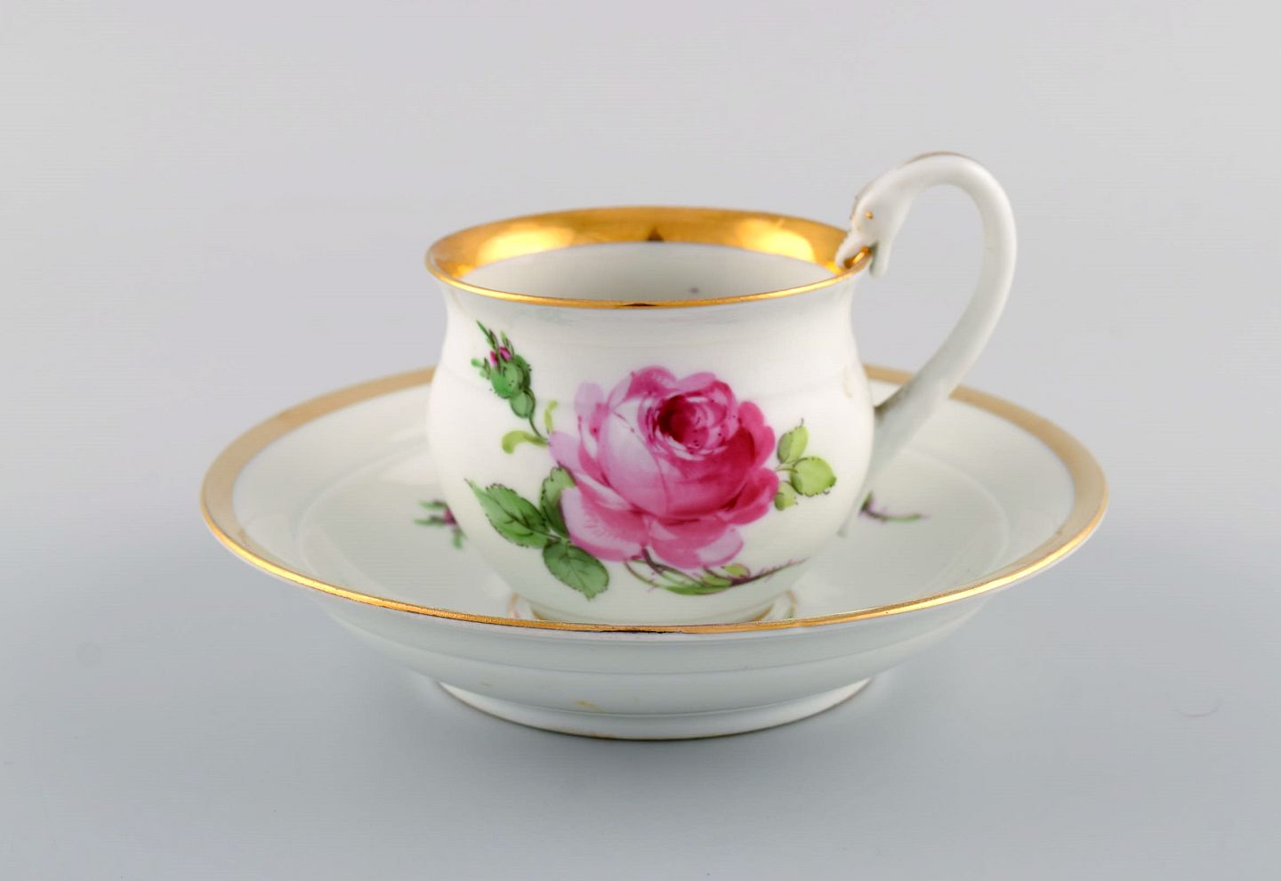 Antique Meissen coffee cup with saucer in hand-painted porcelain with floral motifs and gold rim. Late 19th century.