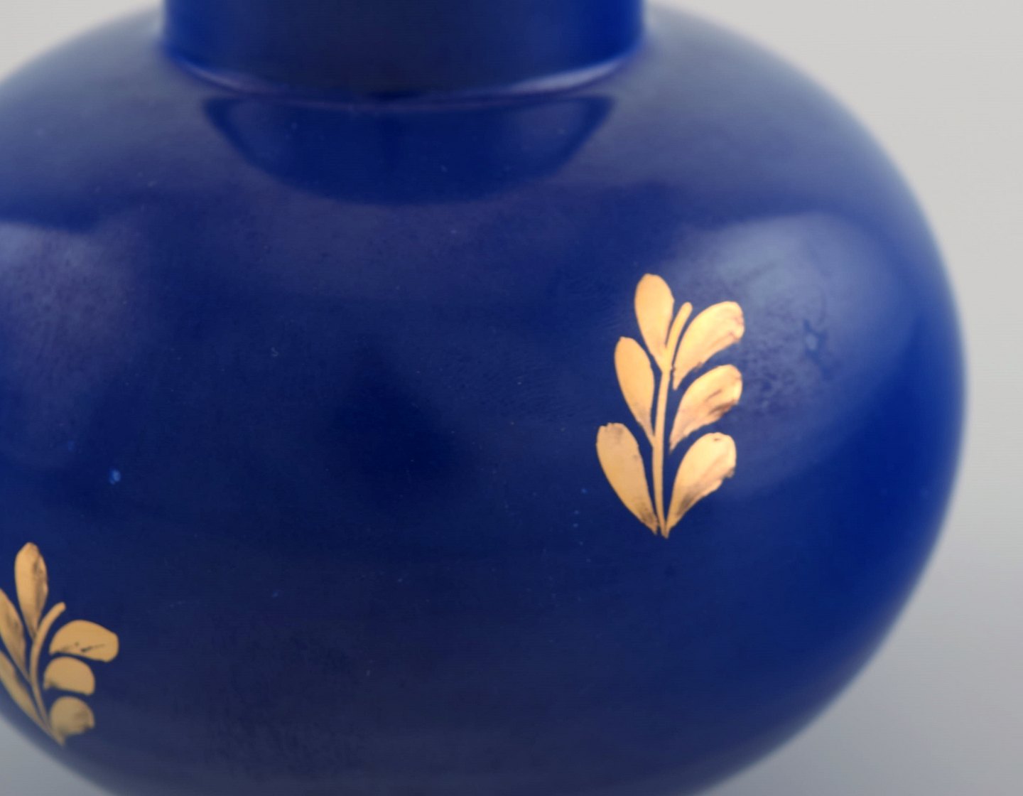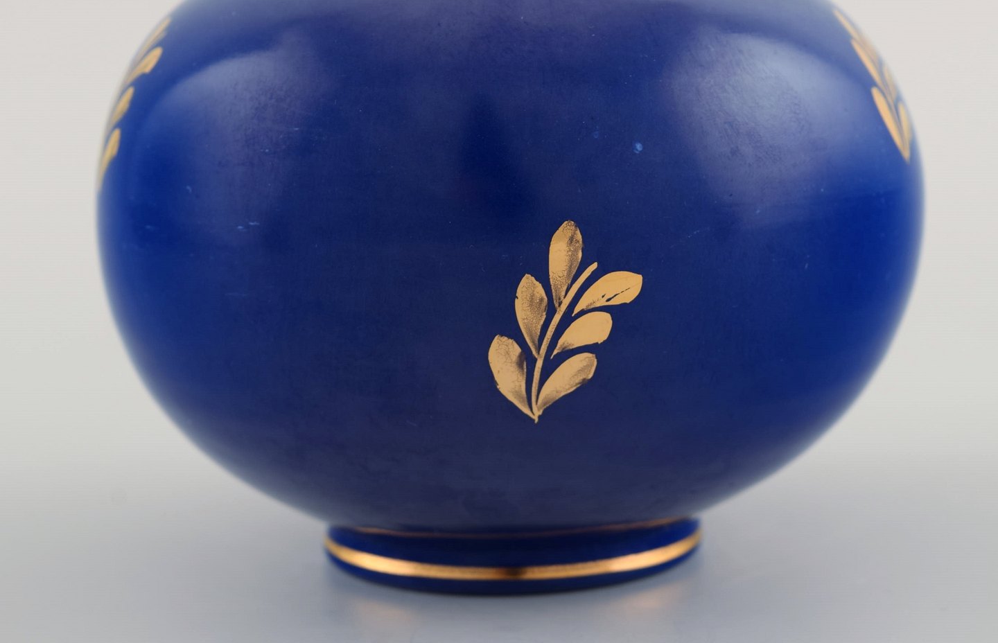 Nittsjö, Sweden. Vase in glazed ceramics. Blue glaze and leaves in gold. 1960's. Stamped. Measures: 12,5 x 12 cm. In very good condition.