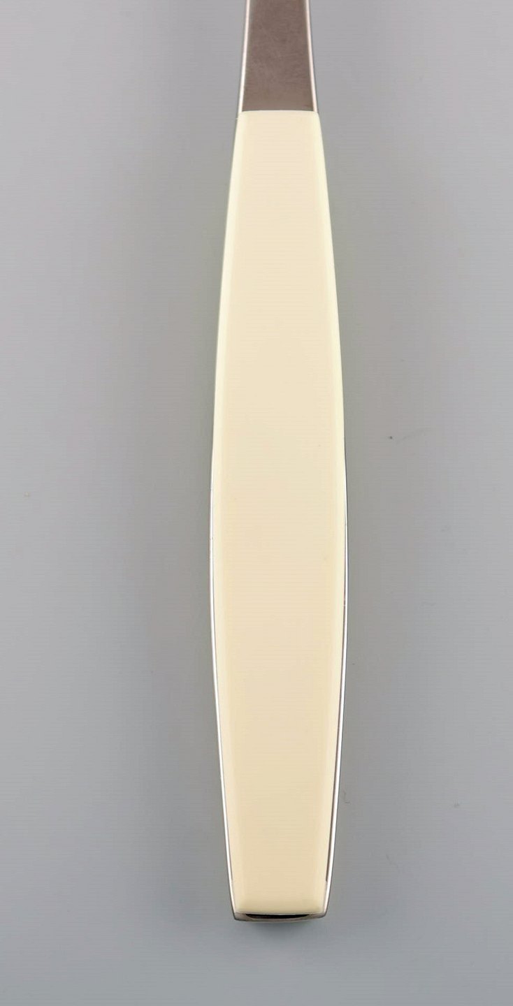 Henning Koppel for Georg Jensen. Strata serveringsske i rustfrit stål og cremefarvet plast. 1960/70'erne. 2 stk på lager.