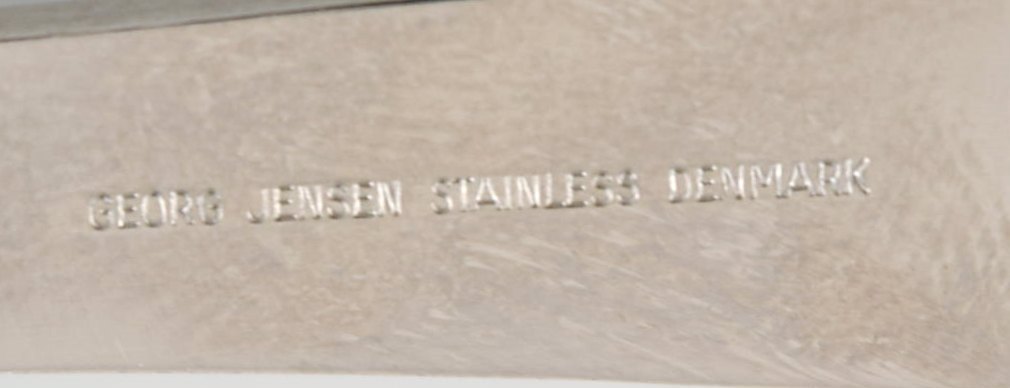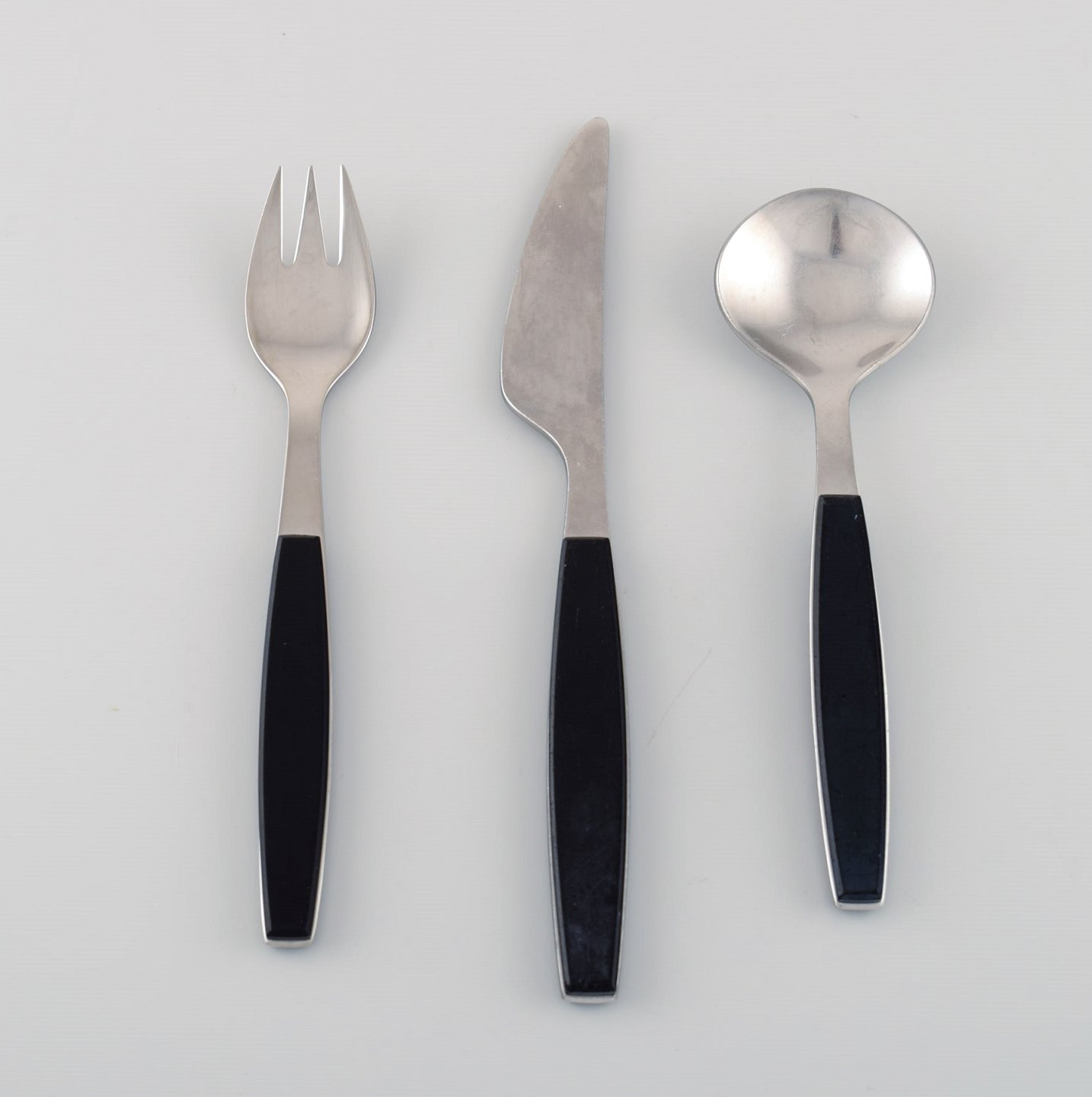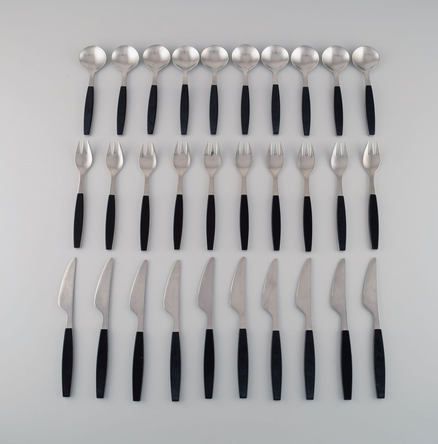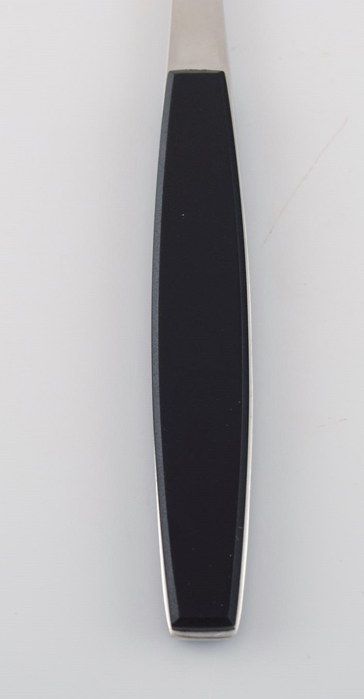 Henning Koppel for Georg Jensen. Strata service for ten people in stainless steel and black plastic. 1960s / 70's. Knife length: 20.3 cm. In very good condition. Stamped.