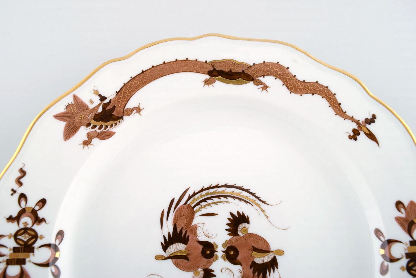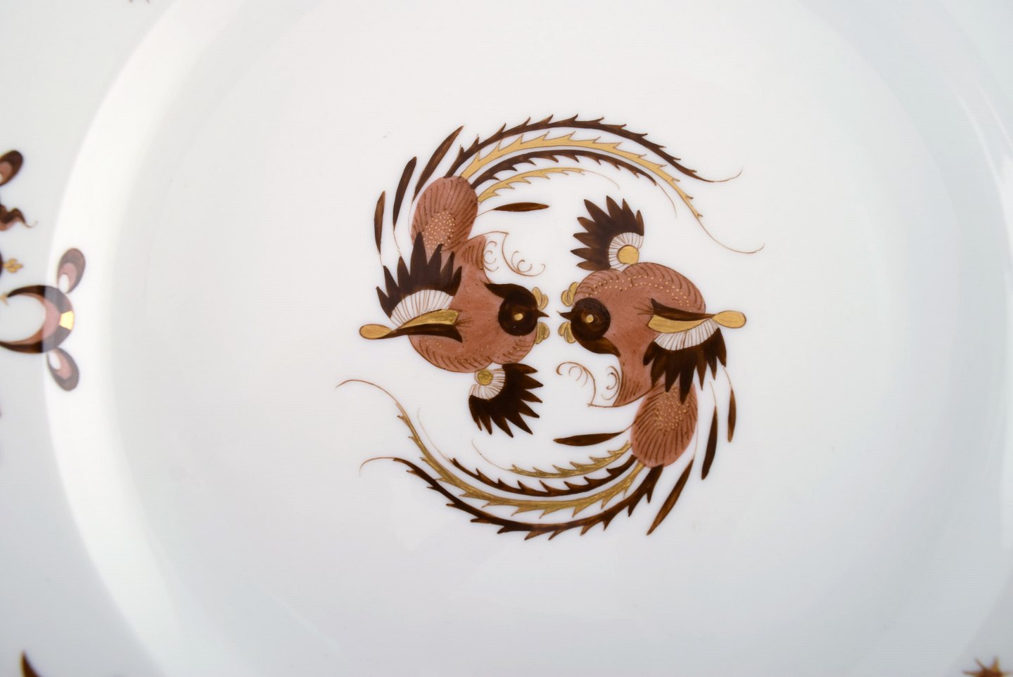 Antique Meissen plate in hand-painted porcelain decorated with birds and gold edge. 19th century. Diameter: 25.2 cm. In very good condition. Stamped. 1st factory quality.
