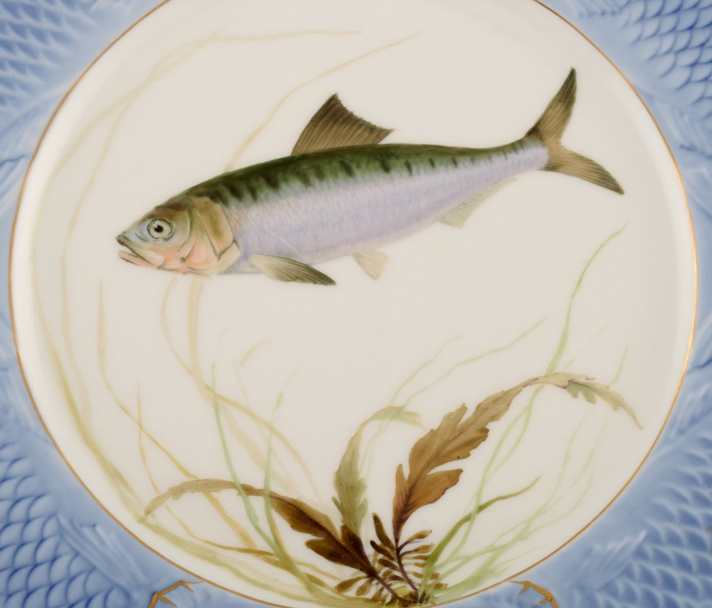Arnold Krog for Royal Copenhagen. Fish service in hand-painted porcelain. Plate with fish. Early 20th century. Measures: 22 cm. 1st factory quality. In good condition with small chip on the backside. Stamped.