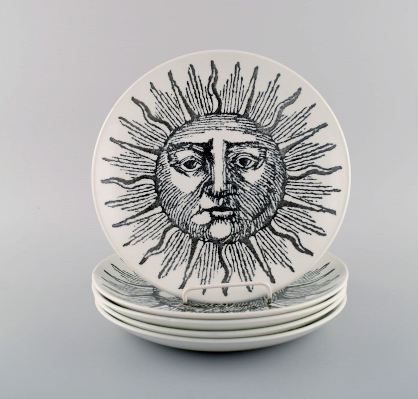 Stig Lindberg and Sven Jonsson for Gustavsberg. Five porcelain dinner plates with a motif of the sun. 1950's. Diameter: 23.5 cm. In very good condition. Stamped.
