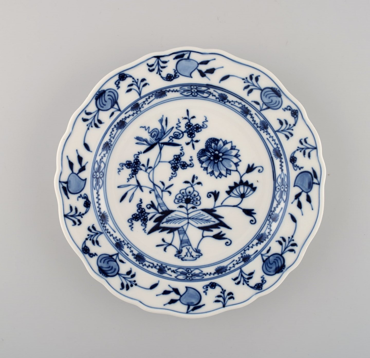 The Meissen "onion" pattern was originally named the "bulb" pattern. While modeled closely after a pattern first produced by Chinese porcelain painters, which featured pomegranates unfamiliar in Saxony, the plates and bowls produced in the Meissen factory in 1740 adopted a feel that was distinctly their own.