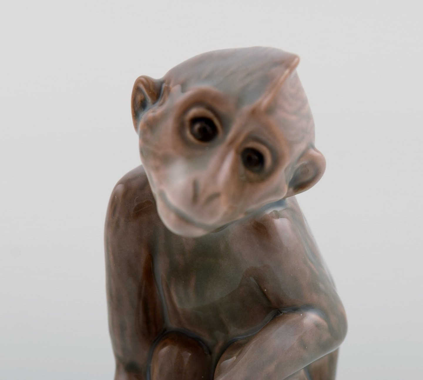 Ingeborg Plockross Irminger (1872-1962) for Bing & Grøndahl. porcelænsfigur. Abe. Midt 1900-tallet. Modelnummer: 1667. Måler: 7,5 x 5 cm. I flot stand. Stemplet.