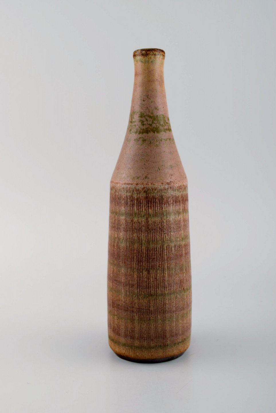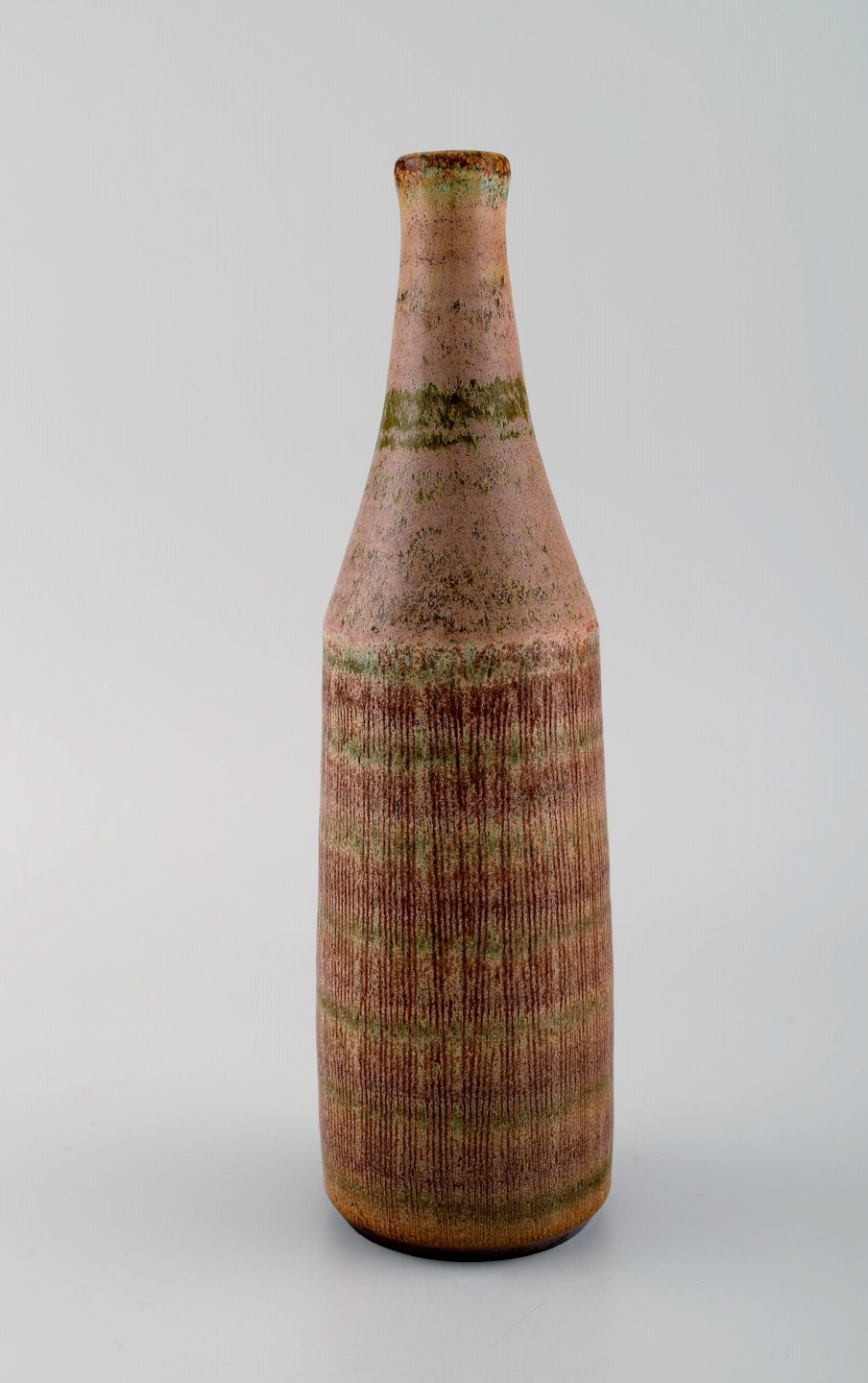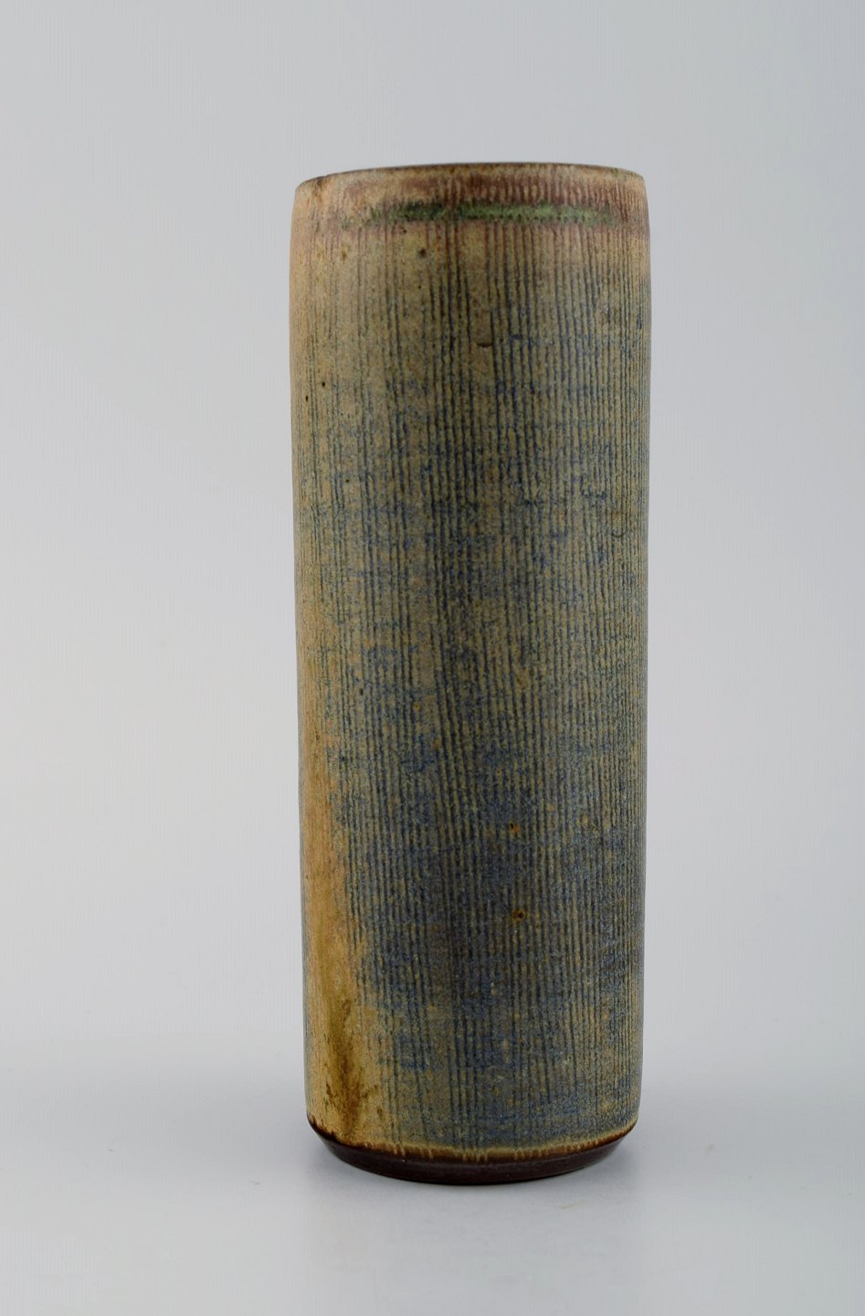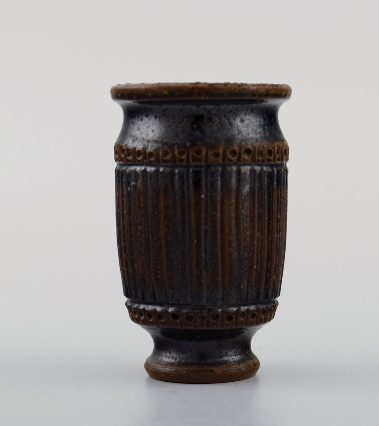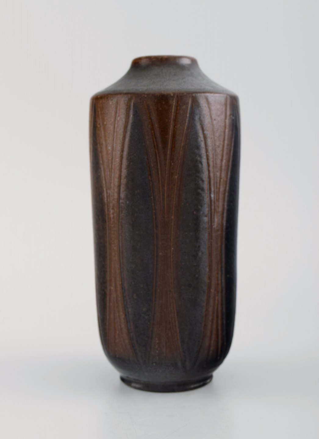 Four Wallåkra vases in glazed ceramics. Swedish design, 1960s. Largest measures: 25 x 7.5 cm. Stamped. In excellent condition.