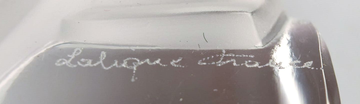Lalique. Three birds in clear art glass. 1960's. In excellent condition. Incised signature. Largest measures: 9 x 4.5 cm.