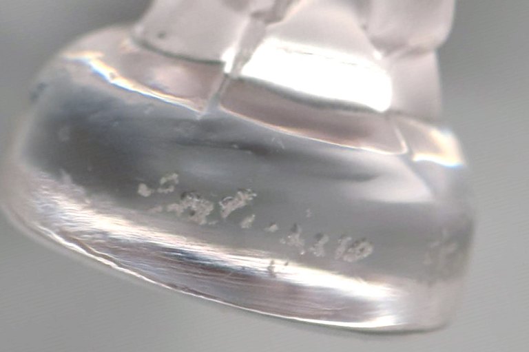 Lalique stenbuk i matteret kunstglas. 1980'erne. Måler: 8 x 4 cm. I flot stand. Indridset signatur.