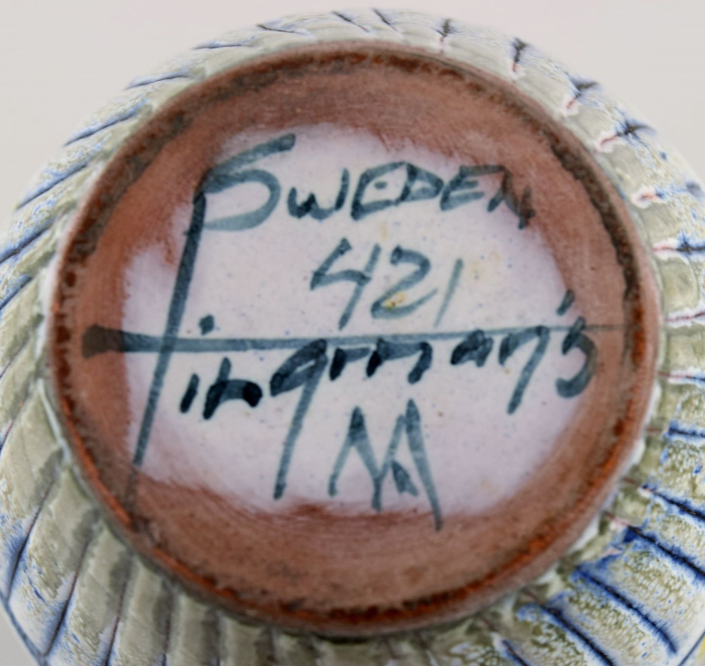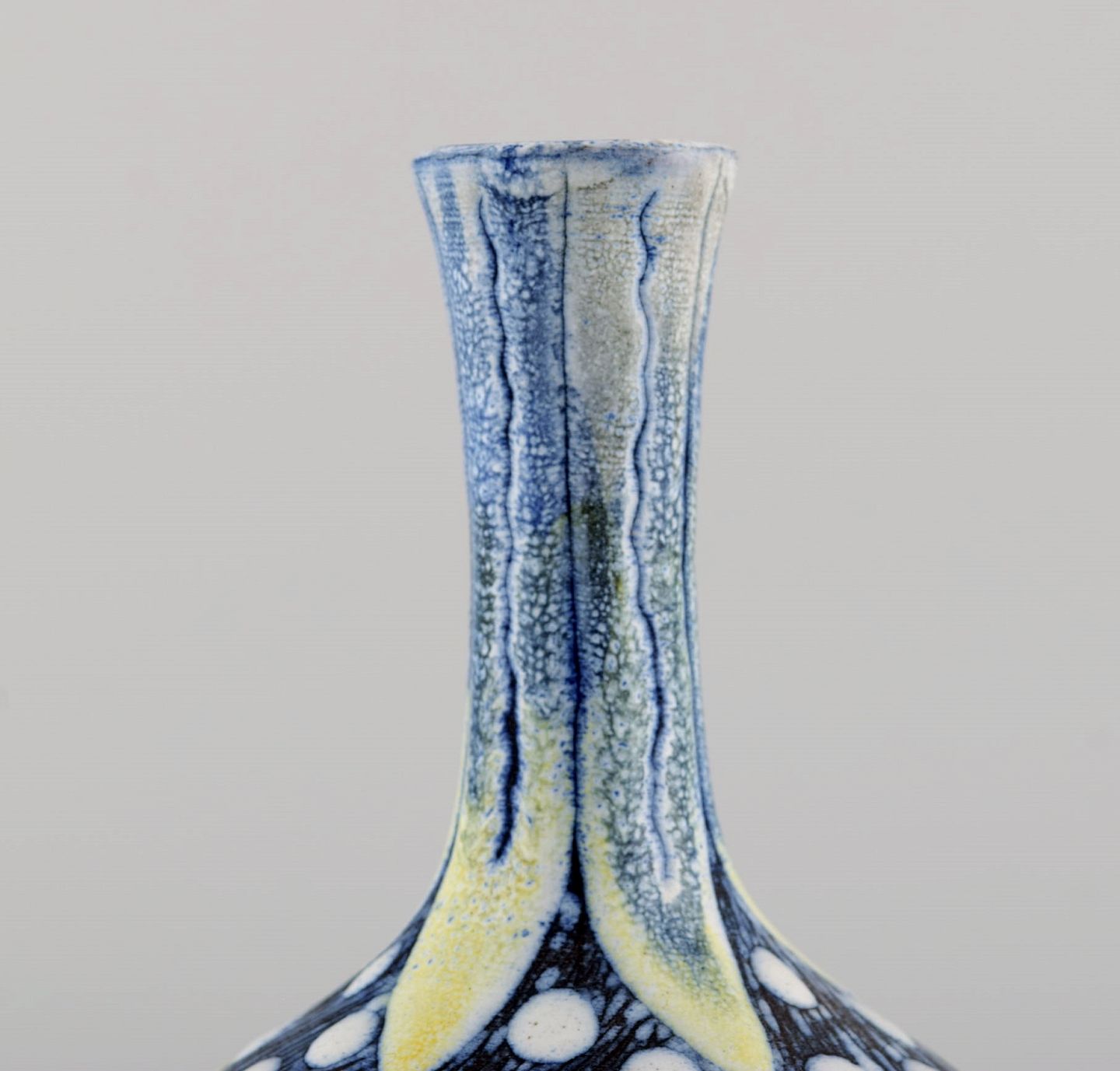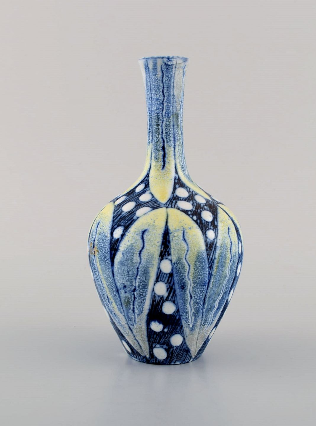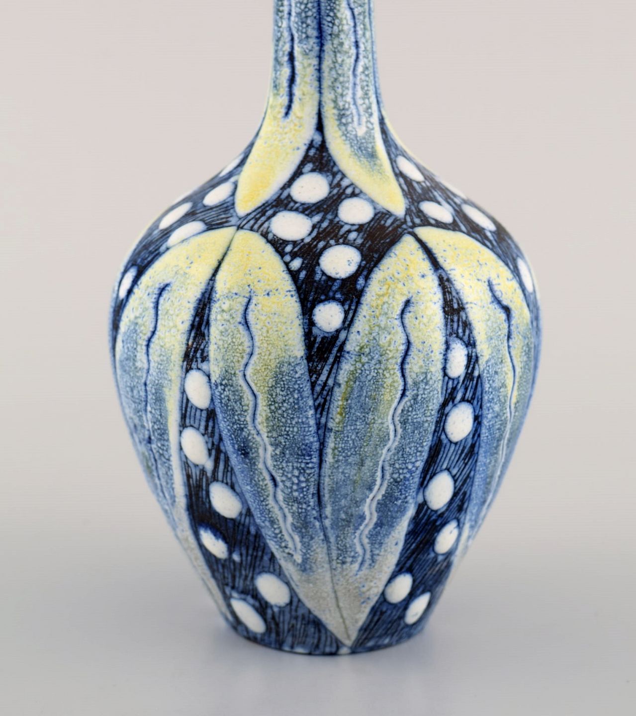 Tilgmans, Sweden. Two vases in glazed ceramics with hand painted flowers. 1960s. Largest measures: 19 x 9 cm. In excellent condition. Stamped.