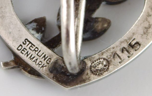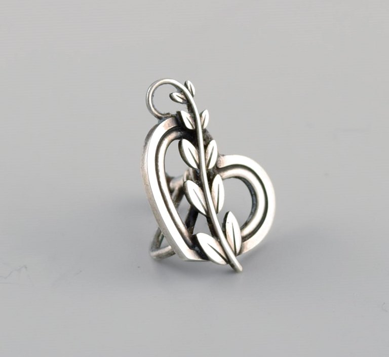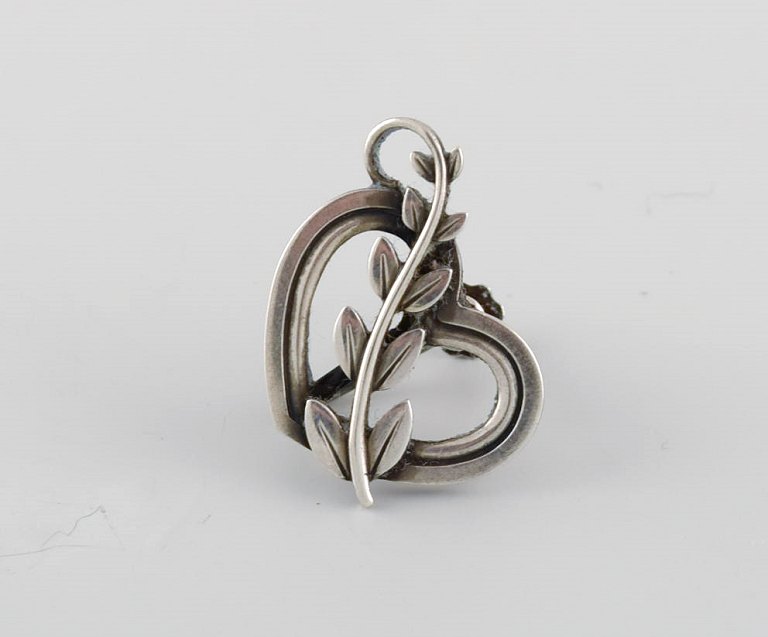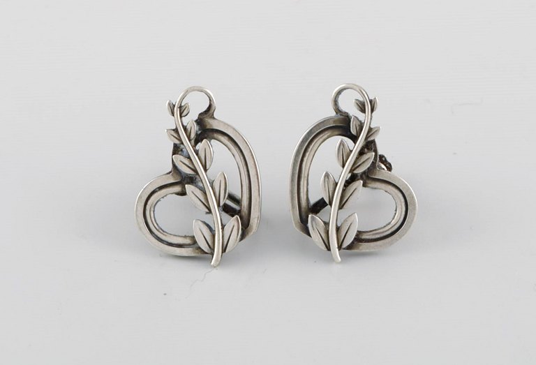 A pair of Georg Jensen ear screws in sterling silver. Hearts with foliage. Design number 115.