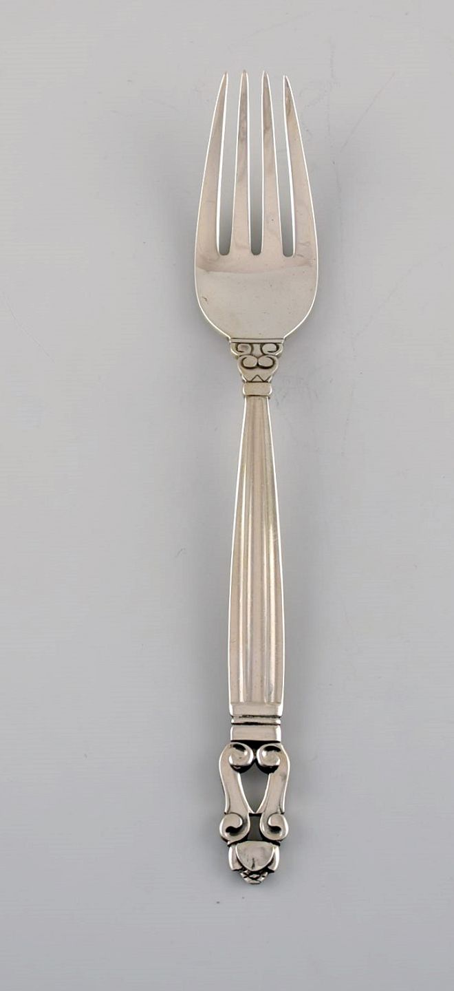 Georg Jensen Acorn dinner fork in sterling silver. Three pieces in stock.