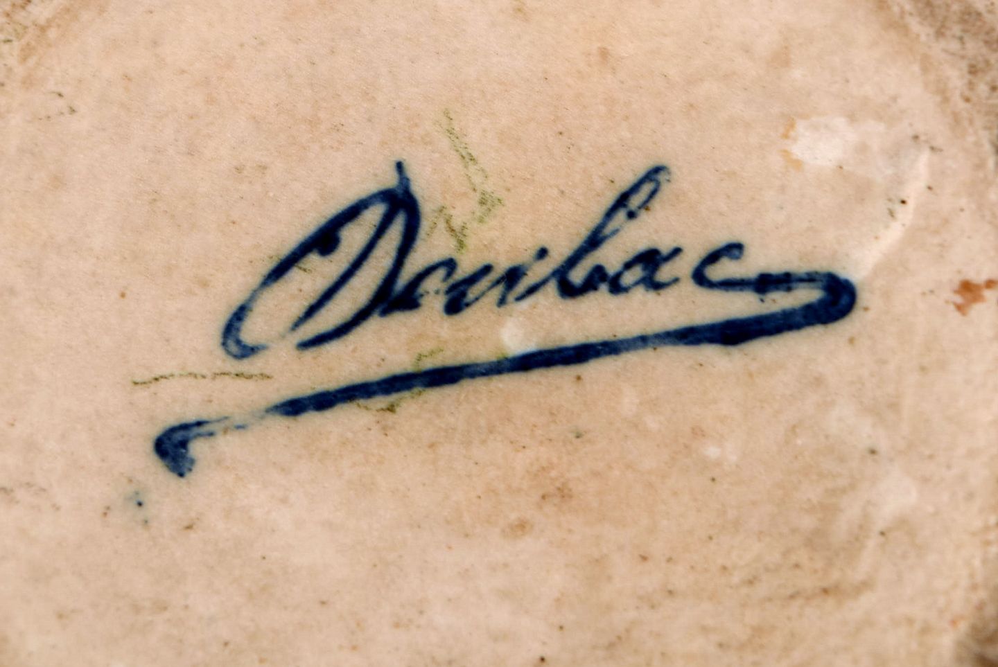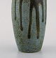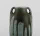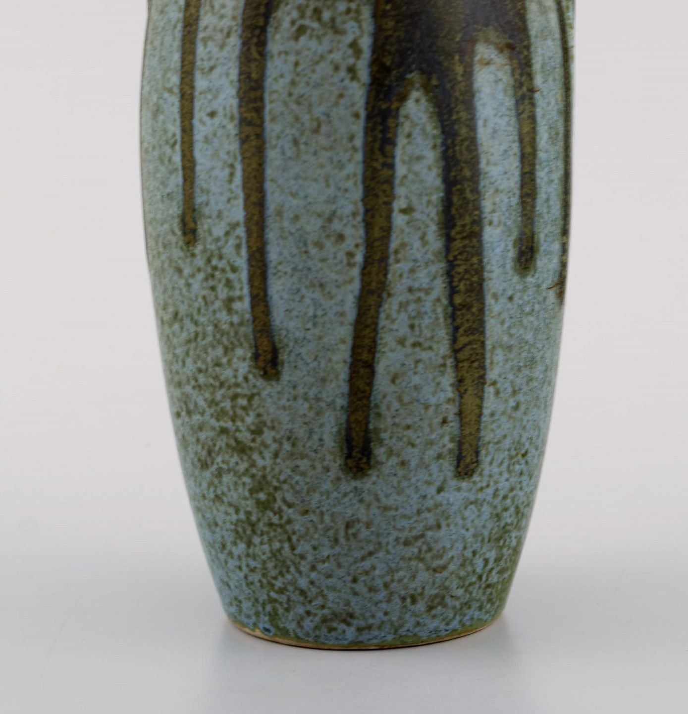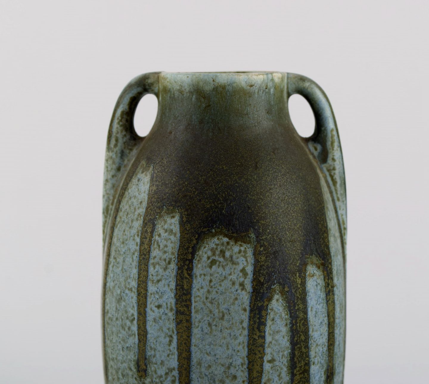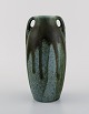 Denbac, France. Vase with handles in glazed ceramic. Beautiful running glaze in shades of blue and green. 1940's. Measures: 18 x 8.5 cm. In excellent condition. Stamped.