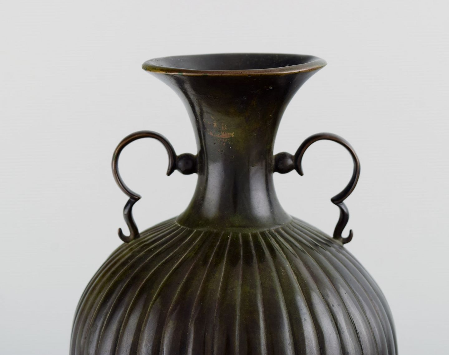 Just Andersen, Denmark. Rare vase in bronze. Model number B130. 1930s. Measures: 21.5 x 14 cm. In excellent condition. Stamped.