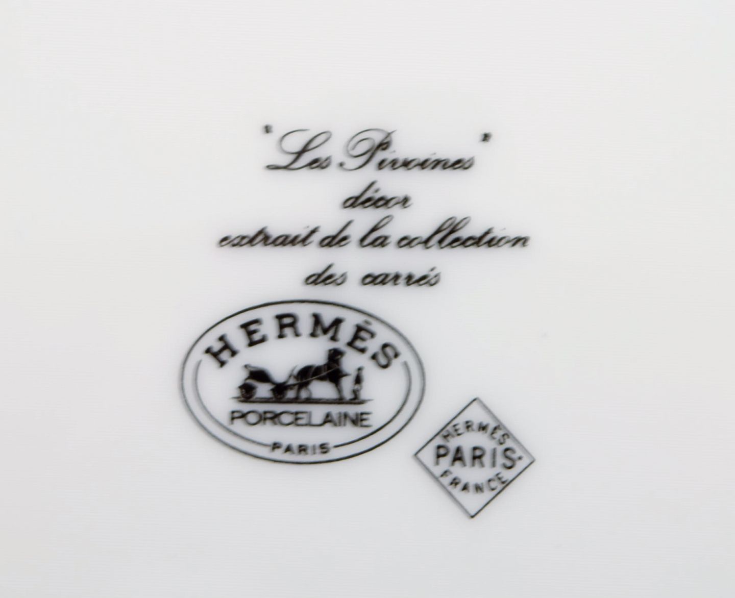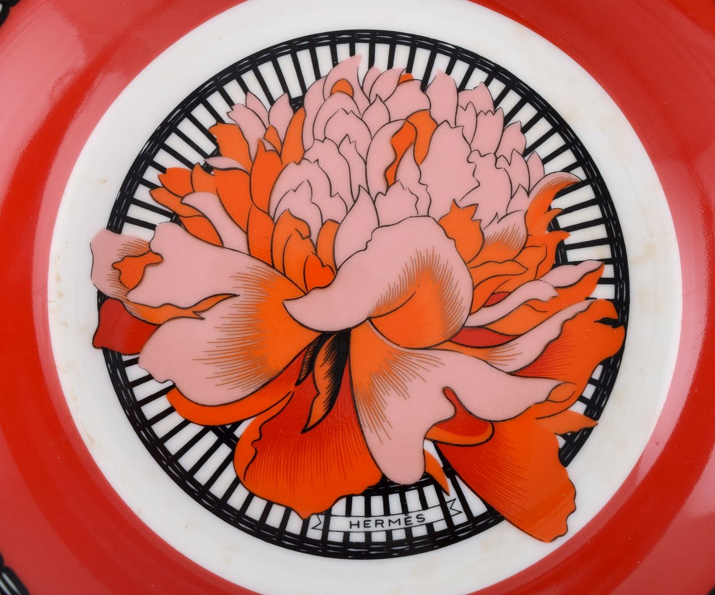 Seks Hermès skåle i porcelæn dekoreret med røde blomster. 1980erne. Måler: 19,5 x 3,8 cm. I flot stand. Stemplet.