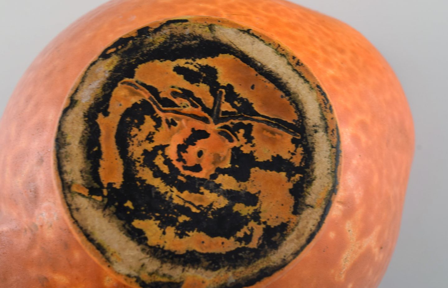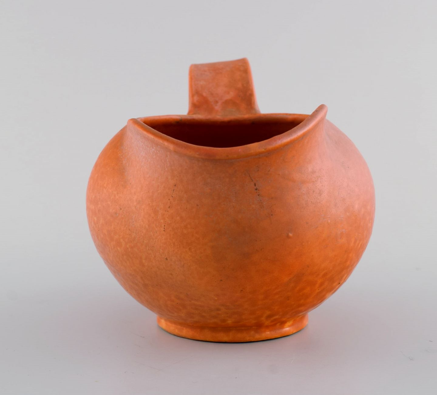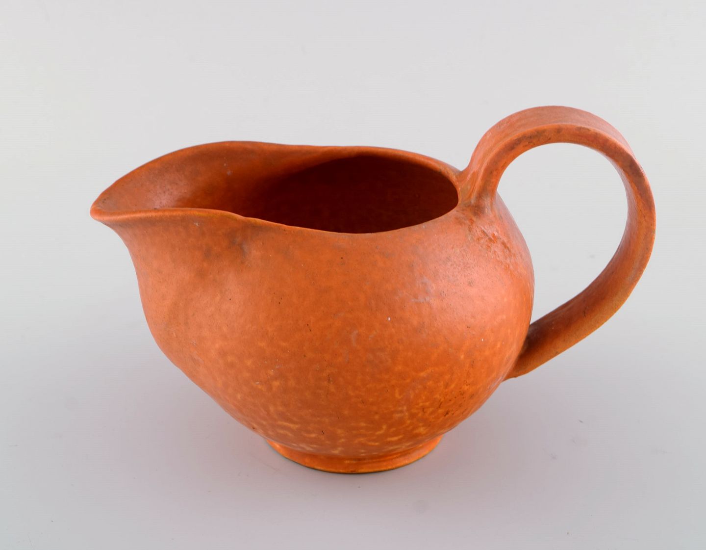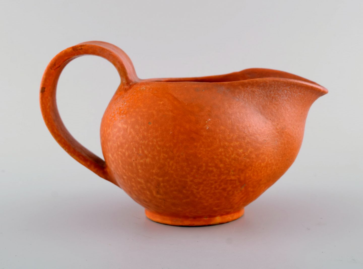 Svend Hammershøi (1873-1948) for Kähler. Jug in glazed ceramics. Beautiful orange uranium glaze. 1930 / 40s. Measures: 20 x 12.5 cm. In excellent condition. Signed.