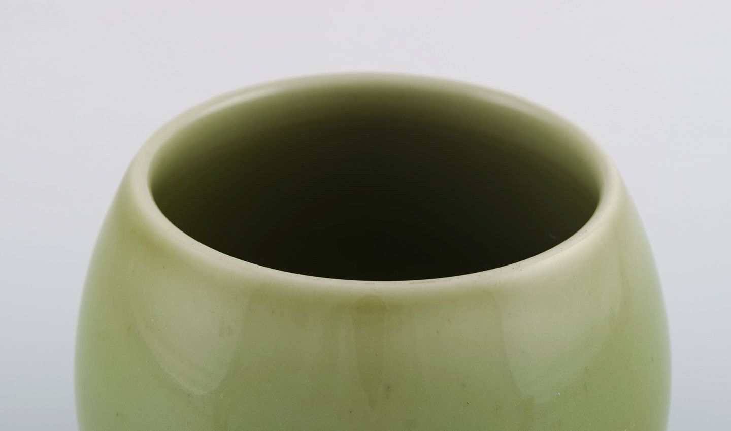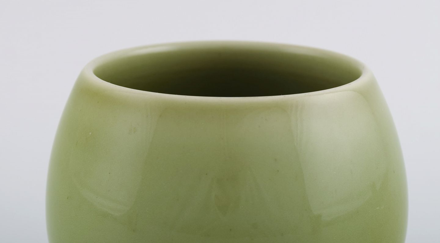 Royal Copenhagen jar in glazed stoneware. Beautiful celadon glaze. Danish design, mid 20th century. Measures: 14 x 11 cm. Stamped. In excellent condition. 1st factory quality.