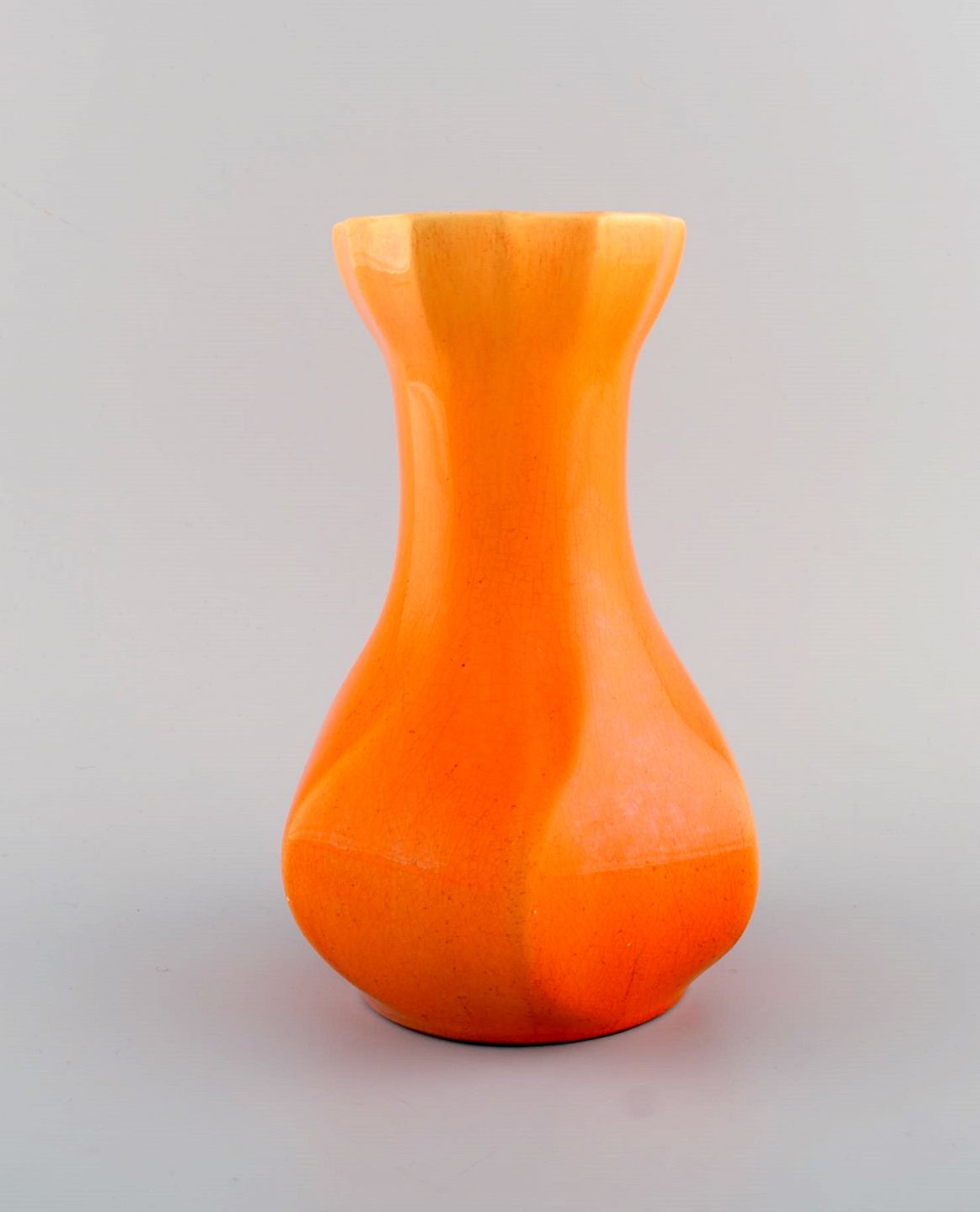 Tidlig Rörstrand vase i glaseret fajance. Smuk glasur i lyse orange nuancer. Ca. 1920.
