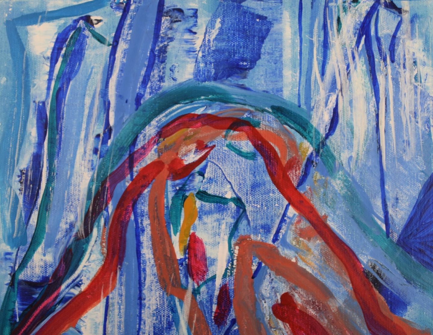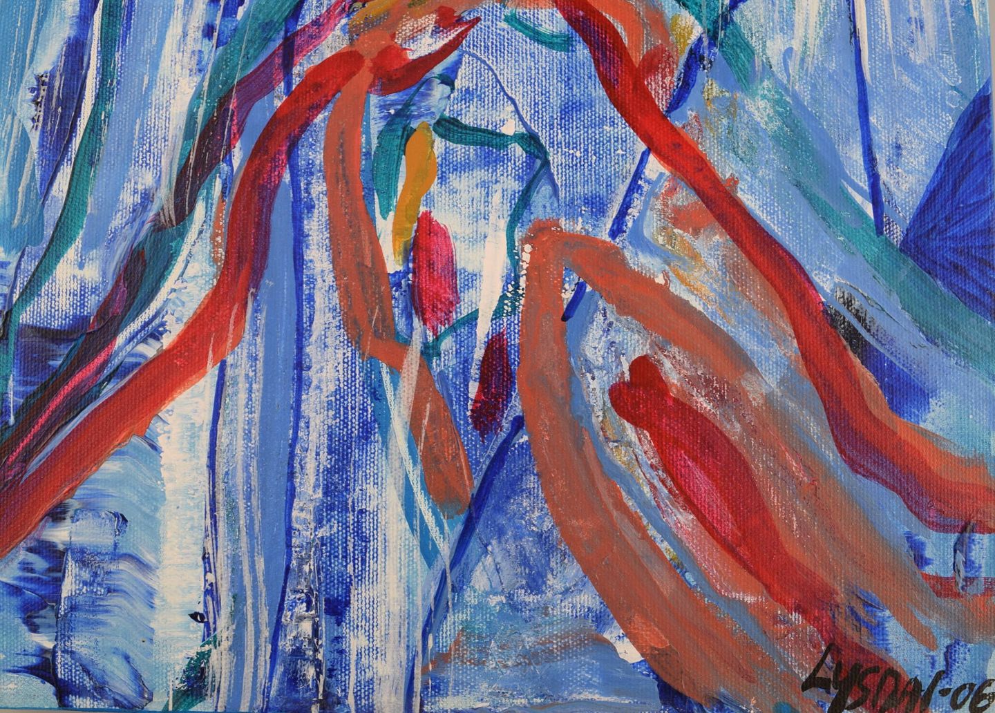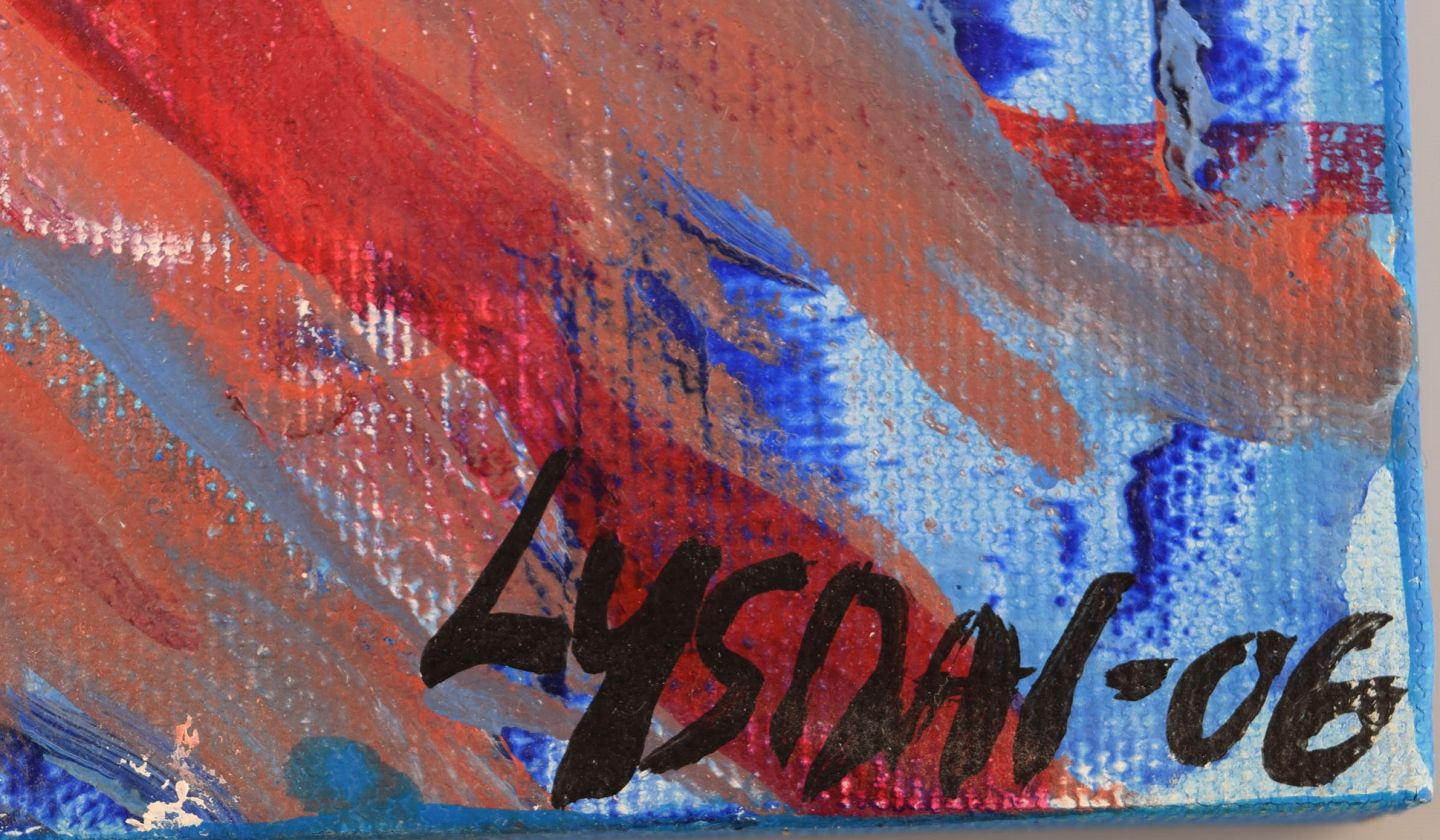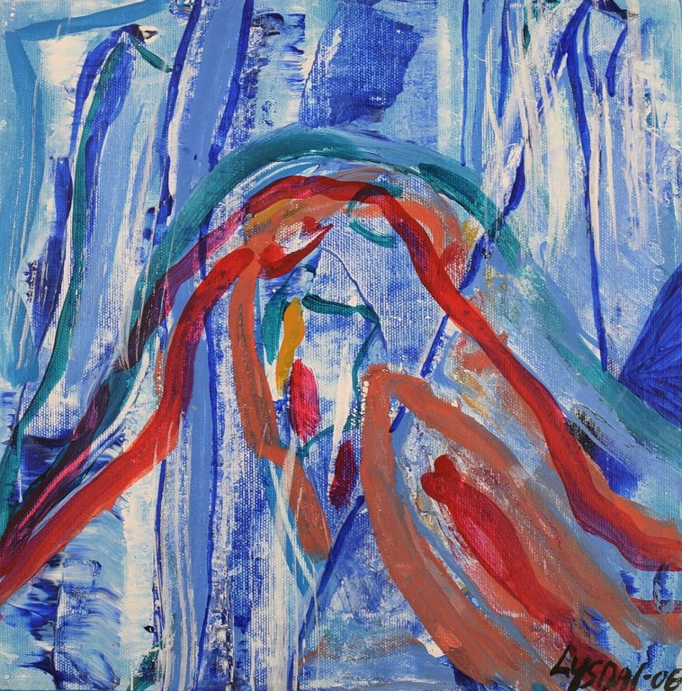 Ivy Lysdal, b 1937. Danish ceramist and painter. Acrylic on canvas. Abstract modernist painting. Colorful palette. Dated 2006.