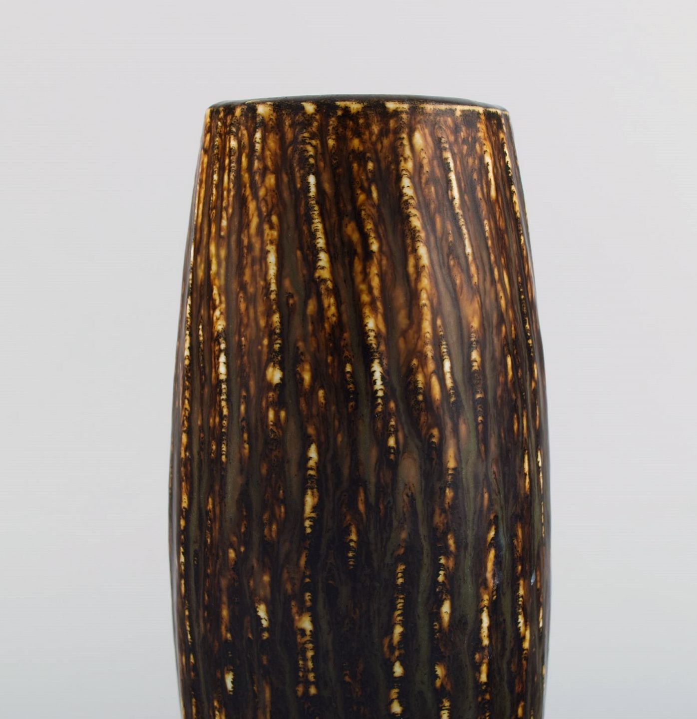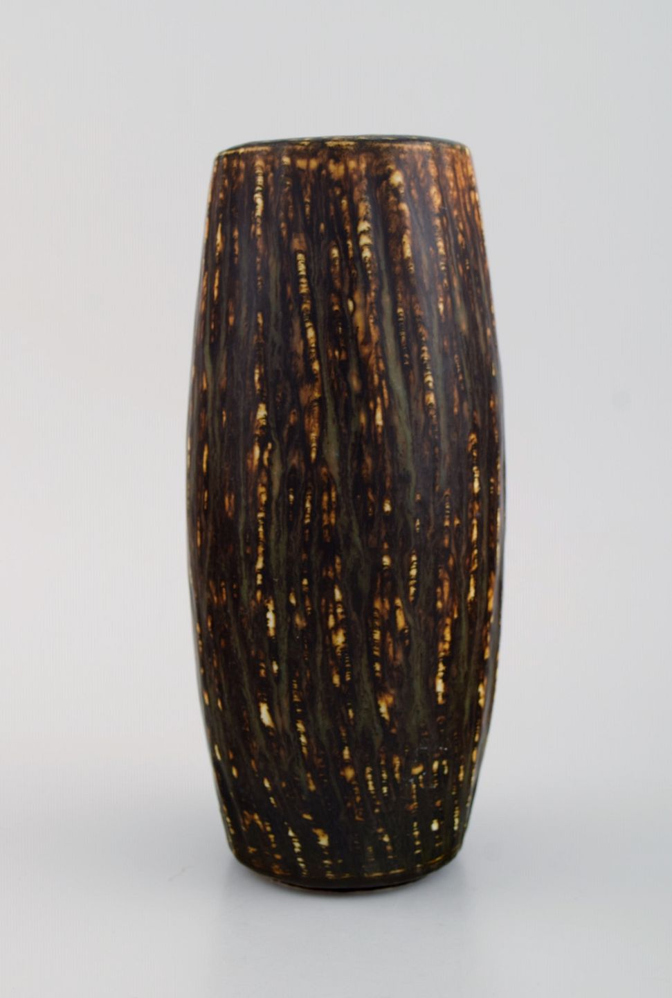 Gunnar Nylund for Rörstrand. Vase i glaseret stentøj. Smuk glasur i brune nuancer. 1960'erne.