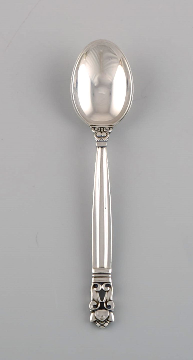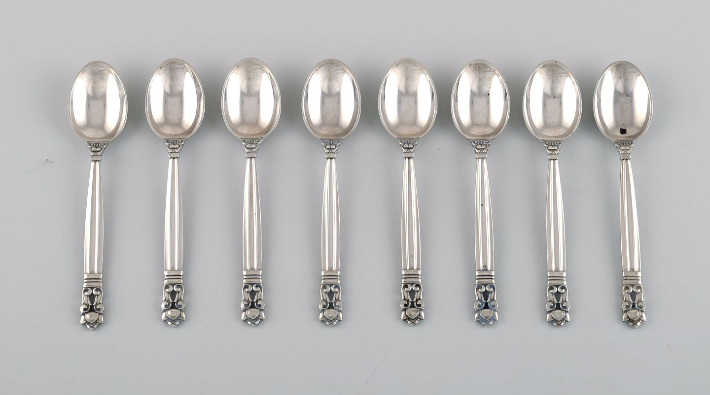 Eight Georg Jensen Acorn coffee spoons in sterling silver.