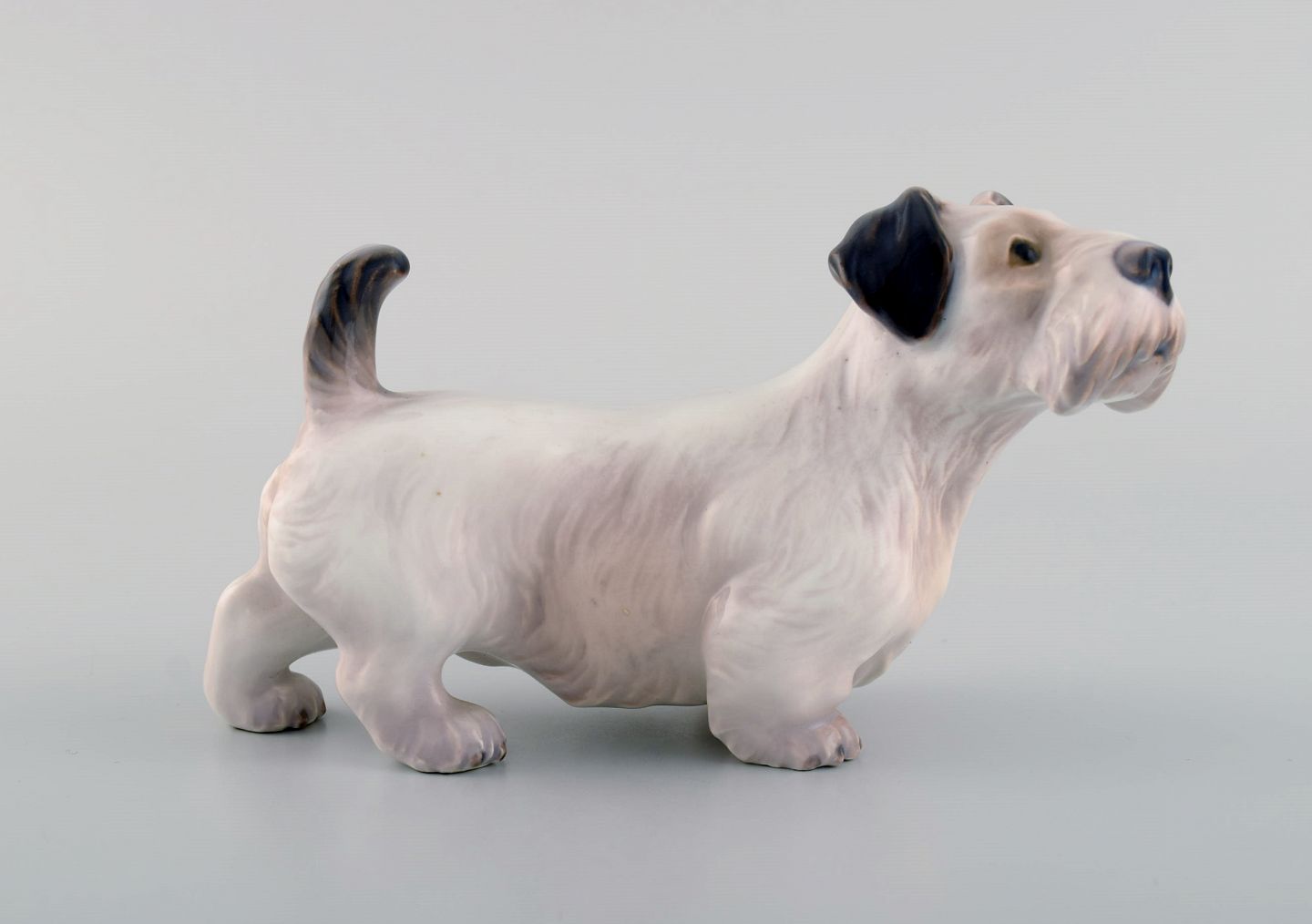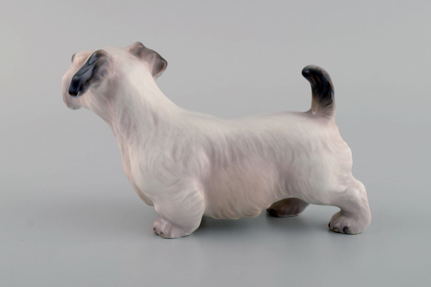 Dahl Jensen porcelænsfigur. Sealyham Terrier. Modelnummer 1002. 1930/40'erne. Måler: 17,5 x 10,5 cm. I flot stand. Stemplet. 1. Sortering.