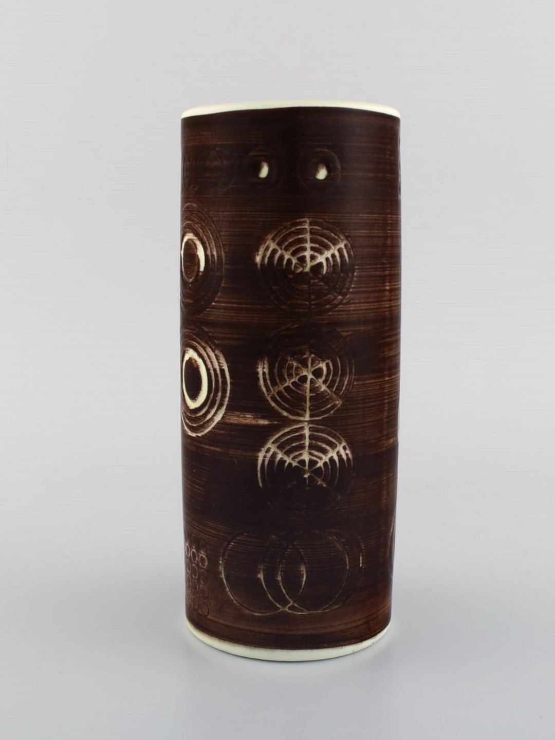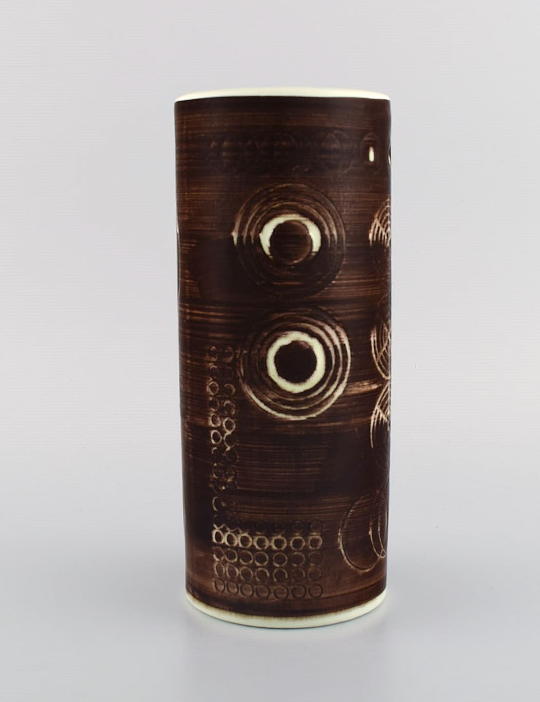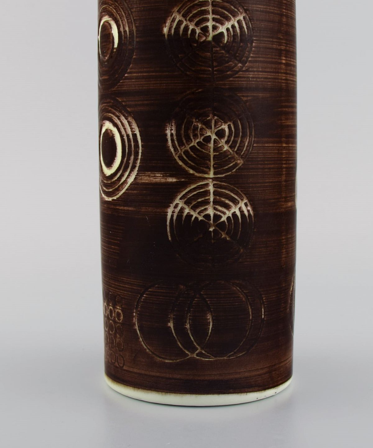 Olle Alberius for Rörstrand. Sarek vase i håndmalet glaseret keramik. Svensk design, 1960/70´erne. Måler: 22 x 9 cm. I flot stand. Lille hårrevne i bunden. 1. sortering.