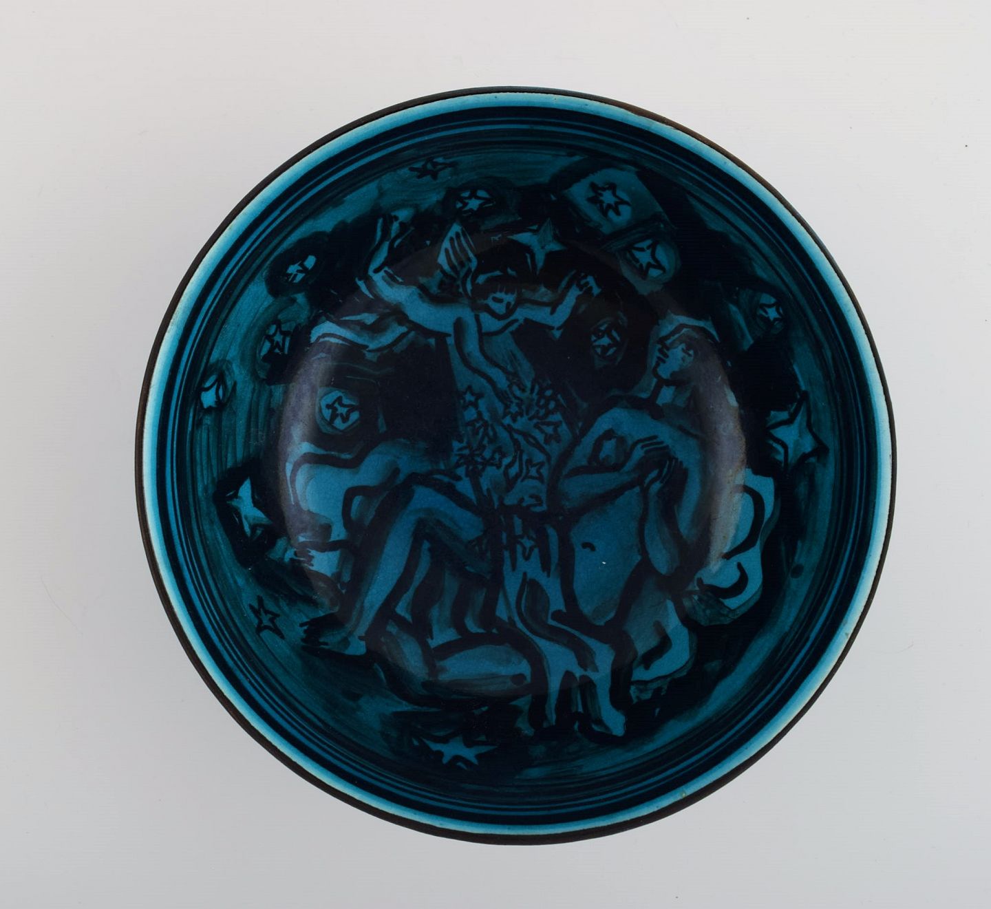 Jais Nielsen for Royal Copenhagen. Unika skål i glaseret keramik med håndmalede scener fra det gamle testamente. Dateret 1950. Måler: 17,5 x 7 cm. I flot stand. Stemplet.