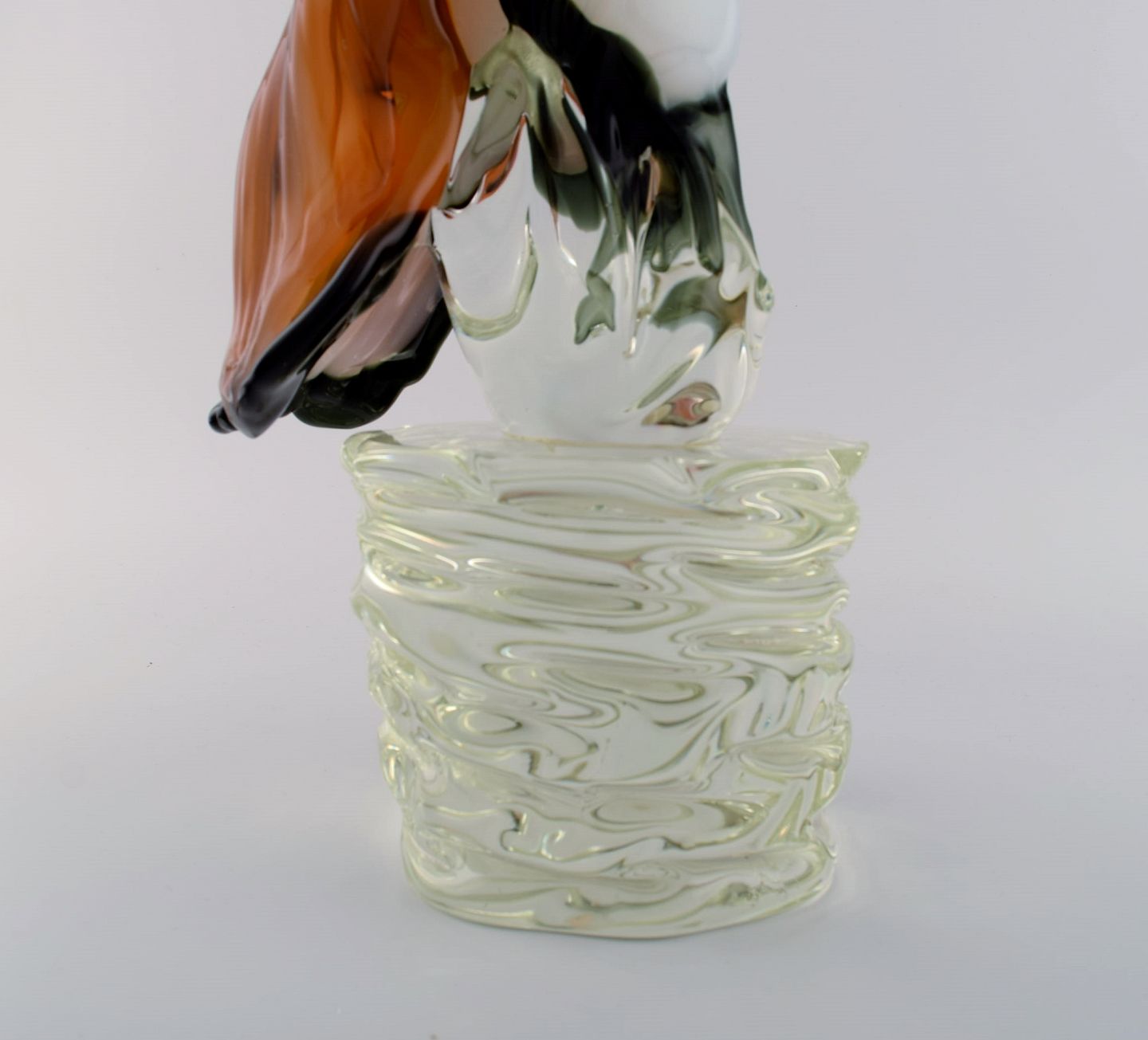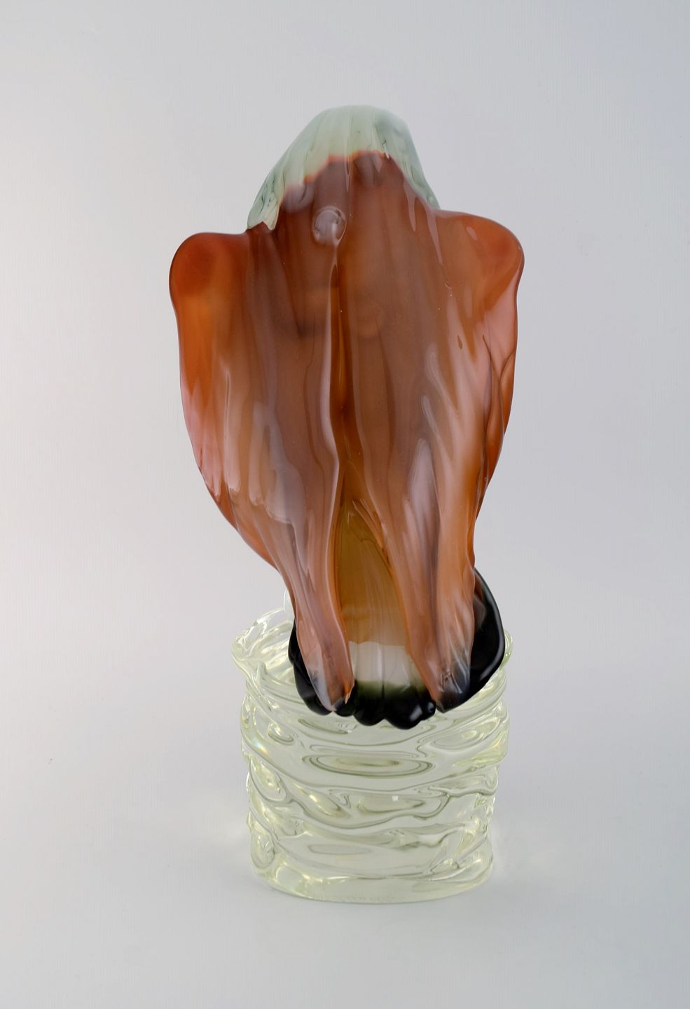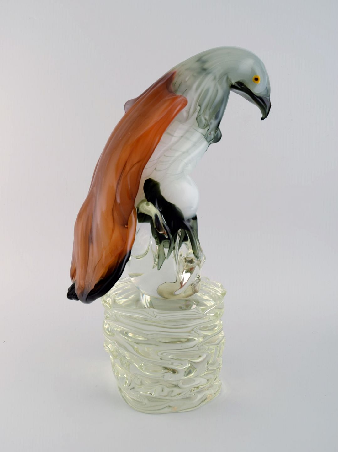 Danilo Zanella for Murano. Stor skulptur i mundblæst kunstglas. Ørn på pedestal. 1980'erne. Måler: 43 x 24 cm. I flot stand. Indridset signatur.