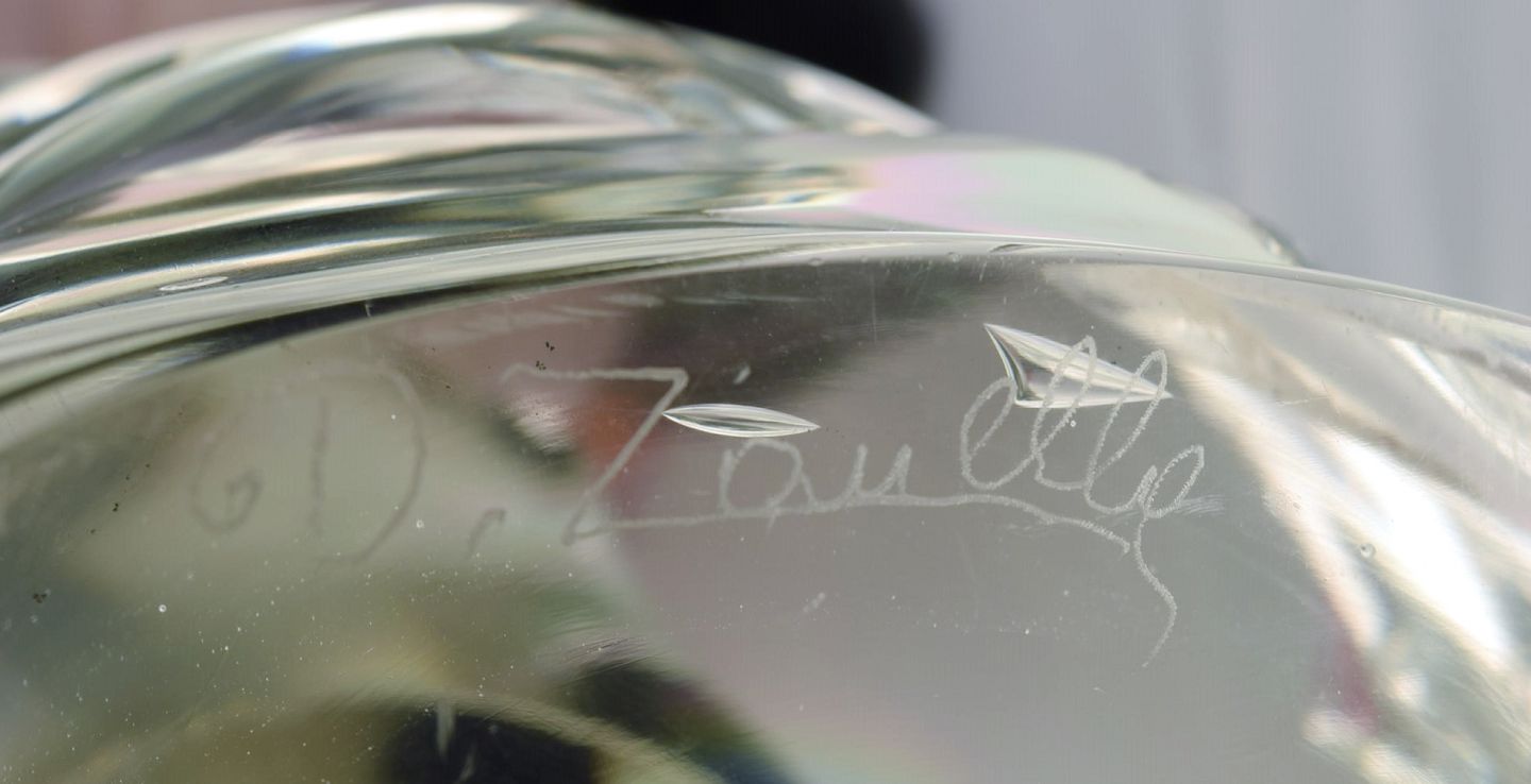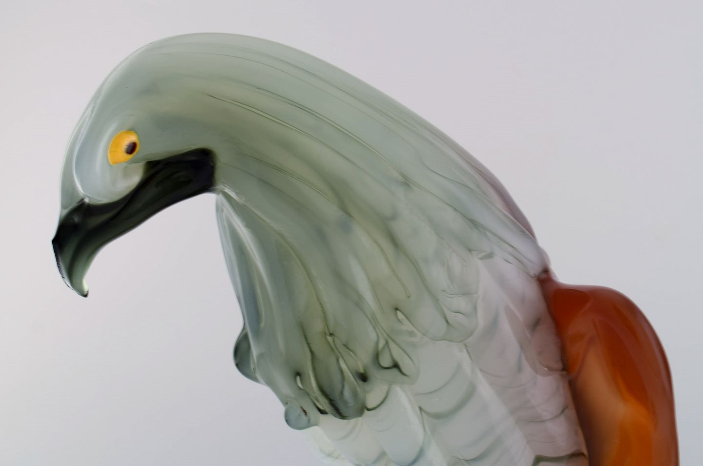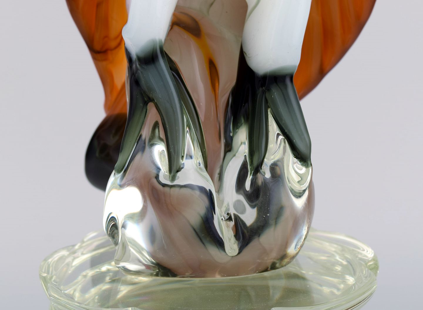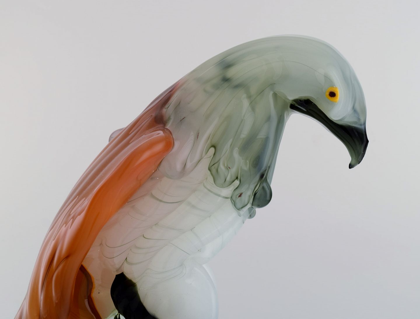 Danilo Zanella for Murano. Stor skulptur i mundblæst kunstglas. Ørn på pedestal. 1980'erne. Måler: 43 x 24 cm. I flot stand. Indridset signatur.