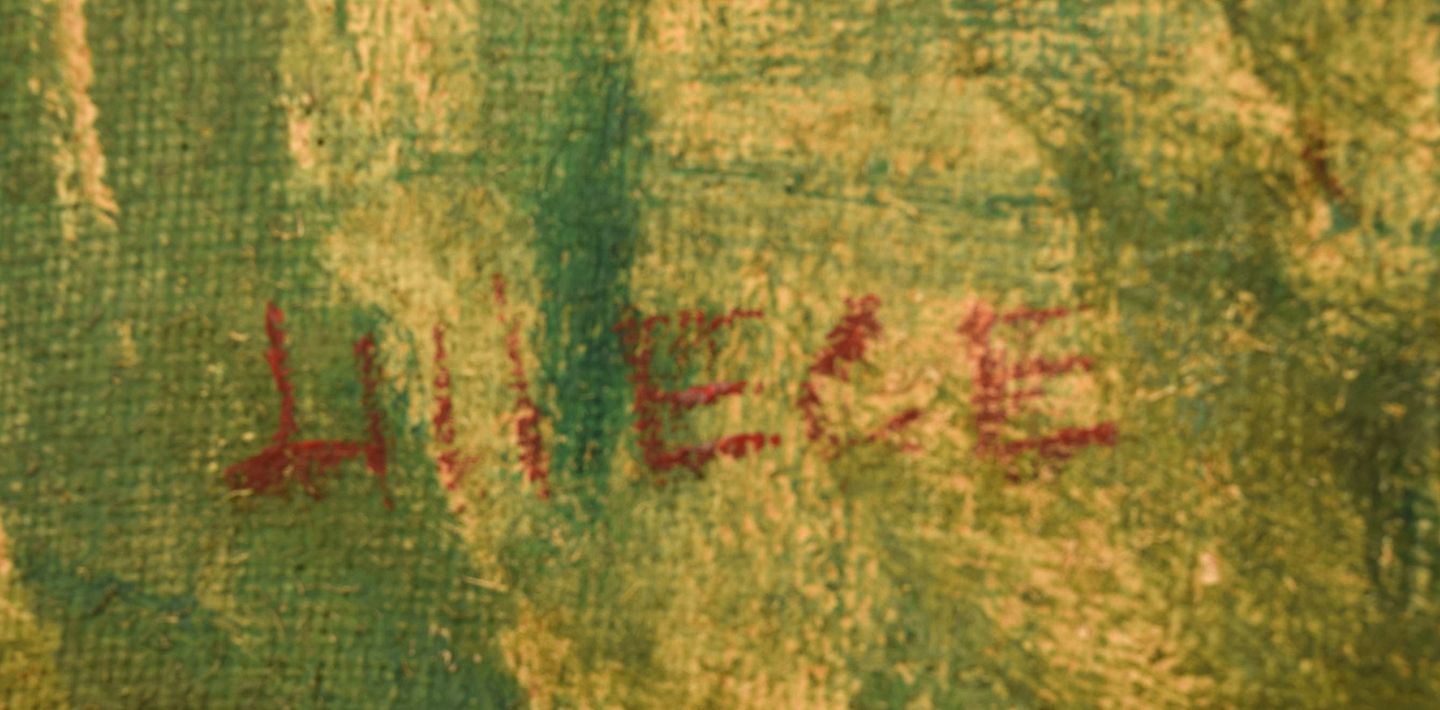 Lili Ege (1913-2004). Danish painter. Oil on canvas. Modernist landscape. 1950s. The canvas measures: 81.5 x 56.5 cm. The frame measures: 7 cm. Signed. In excellent condition.