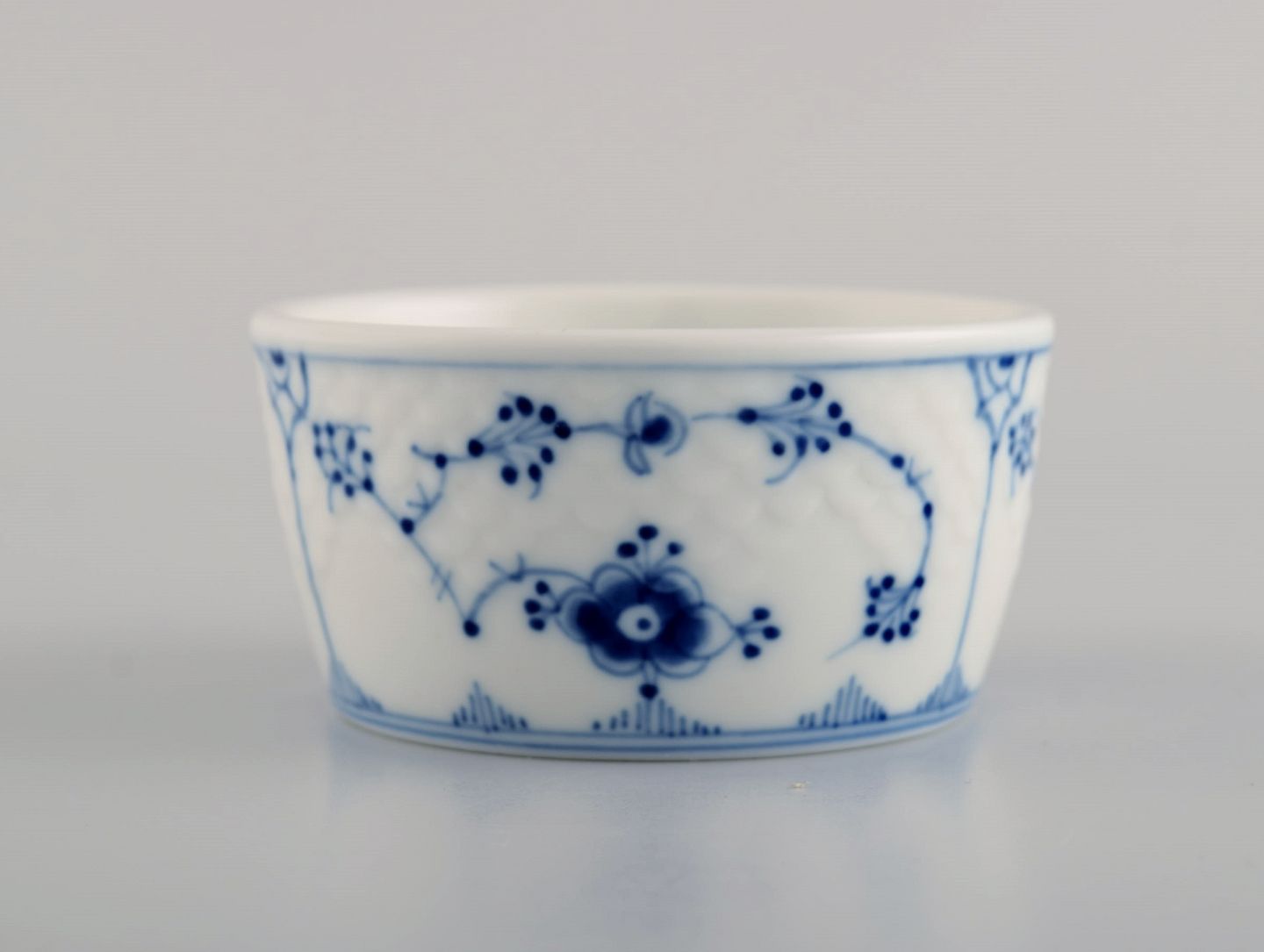 Bing and Grøndahl blue fluted sugar bowl. Model number 1035. Measures: 7.7 x 4 cm. Stamped. 1st factory quality.