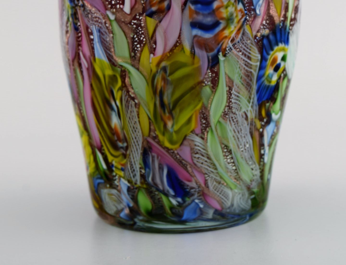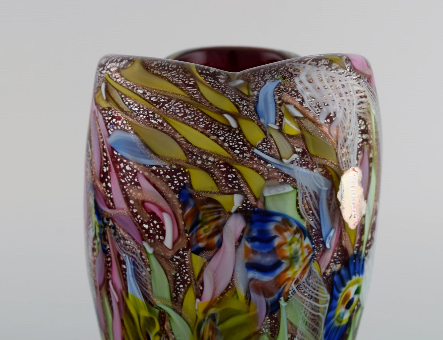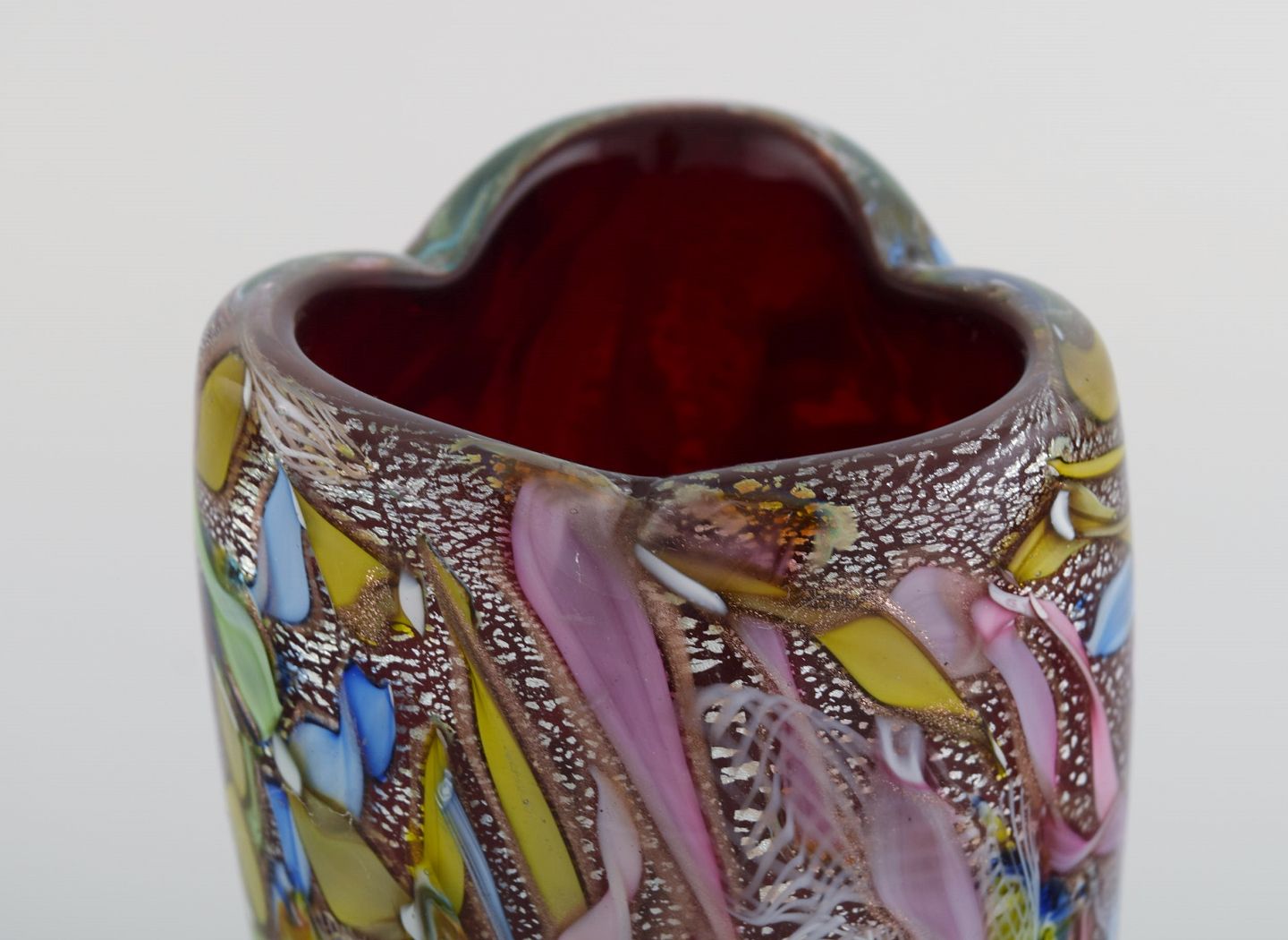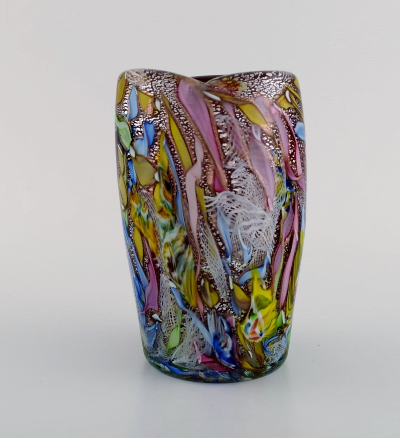 Murano vase i polykromt mundblæst kunstglas. Italiensk design, 1960/70'erne. Måler: 16,5 x 11,5 cm. I flot stand.