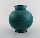Wilhelm Kåge for Gustavsberg. Argenta art deco vase i glaseret keramik dekoreret med blomster i sølvindlæg. Sverige 1940´erne. Måler: 21 x 20,5 cm. Signeret. I flot stand.
