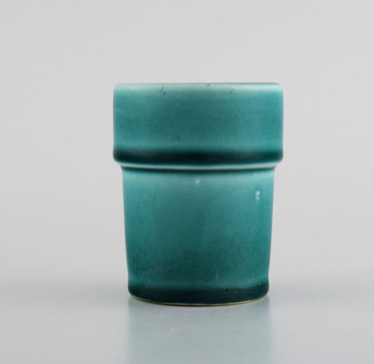 Poul Henningsen (1894-1967) for Royal Copenhagen. Sjælden miniature vase i glaseret keramik. Smuk glasur i grønne nuancer. 1920'erne. Måler: 6,5 x 5 cm. I flot stand. Stemplet.