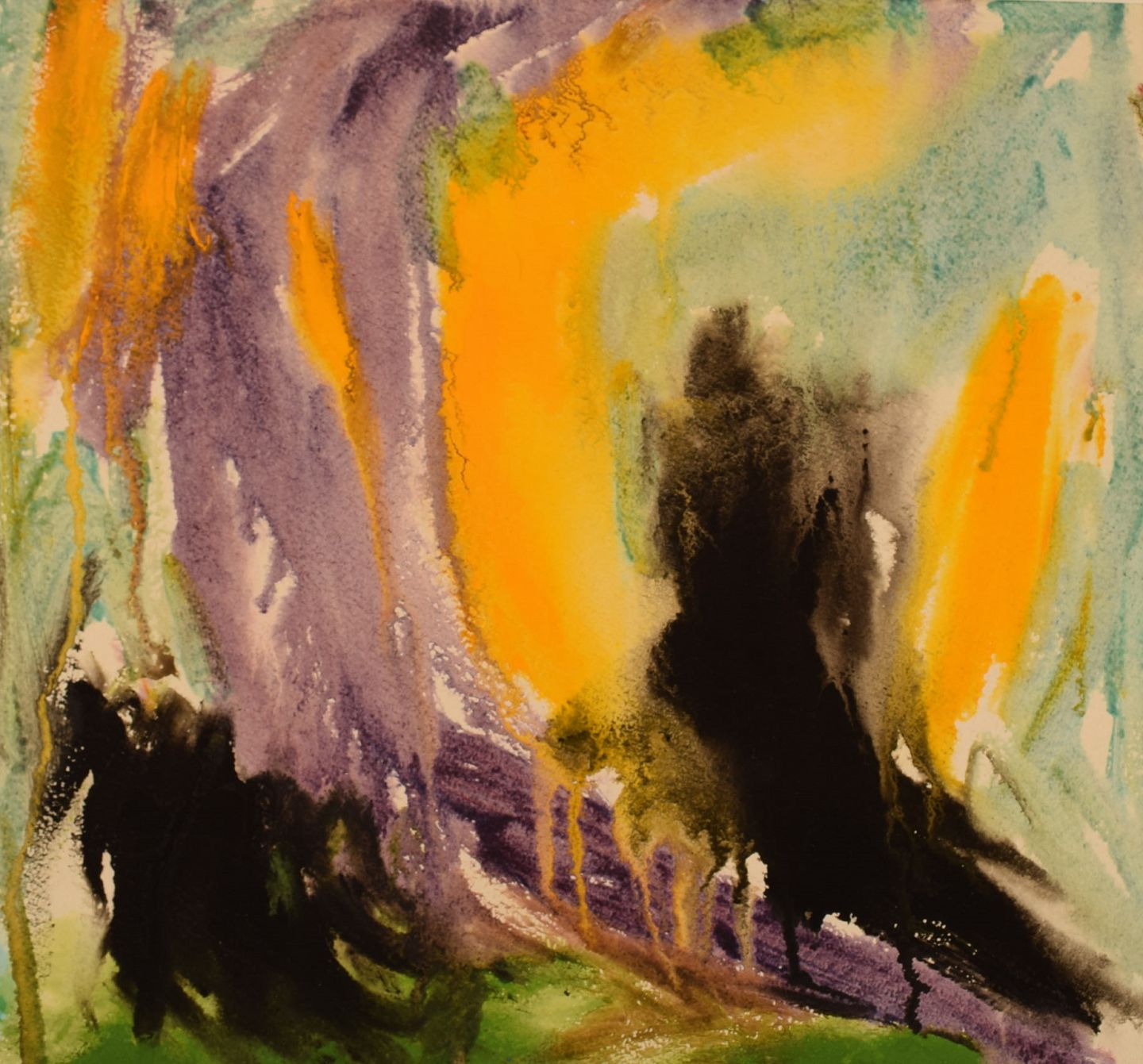 Ivy Lysdal, f 1937. Dansk keramiker og kunstmaler. Gouache på papir. Abstrakt modernistisk maleri. Koloristisk palette. Dateret 1992.