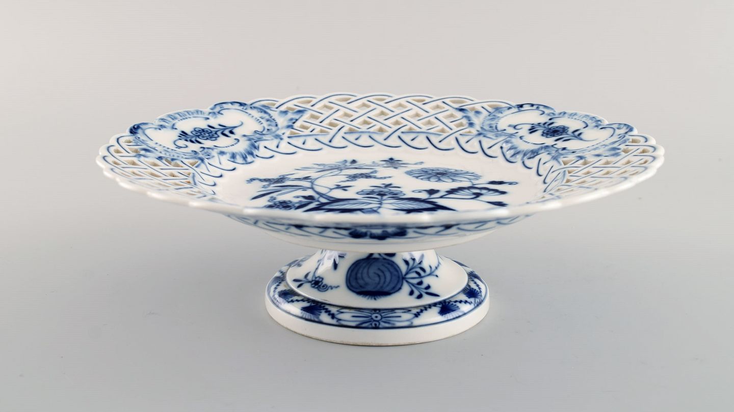 Antik Meissen "Løgmønstret" kageopsats i håndmalet porcelæn. Tidligt 1900-tallet.