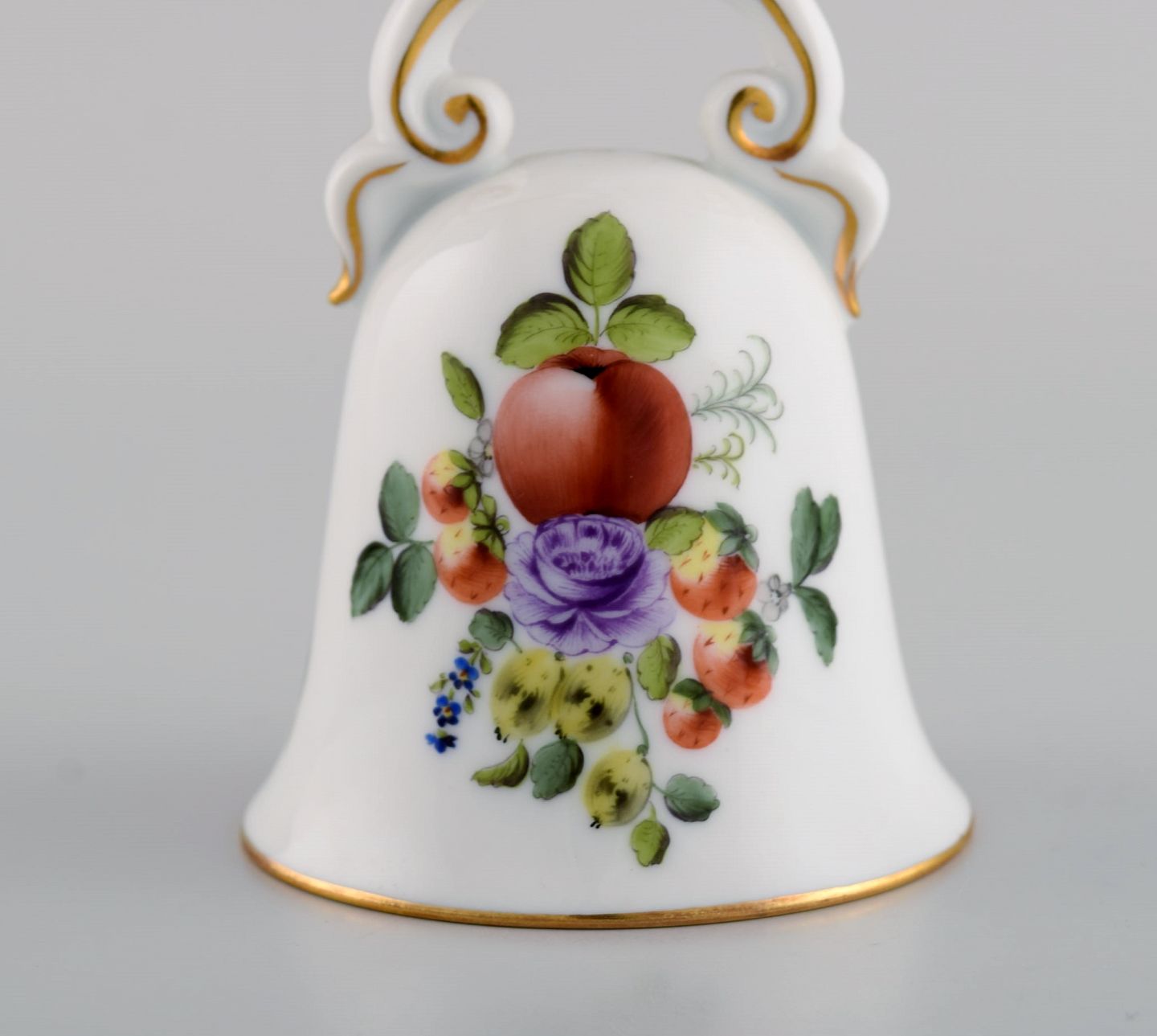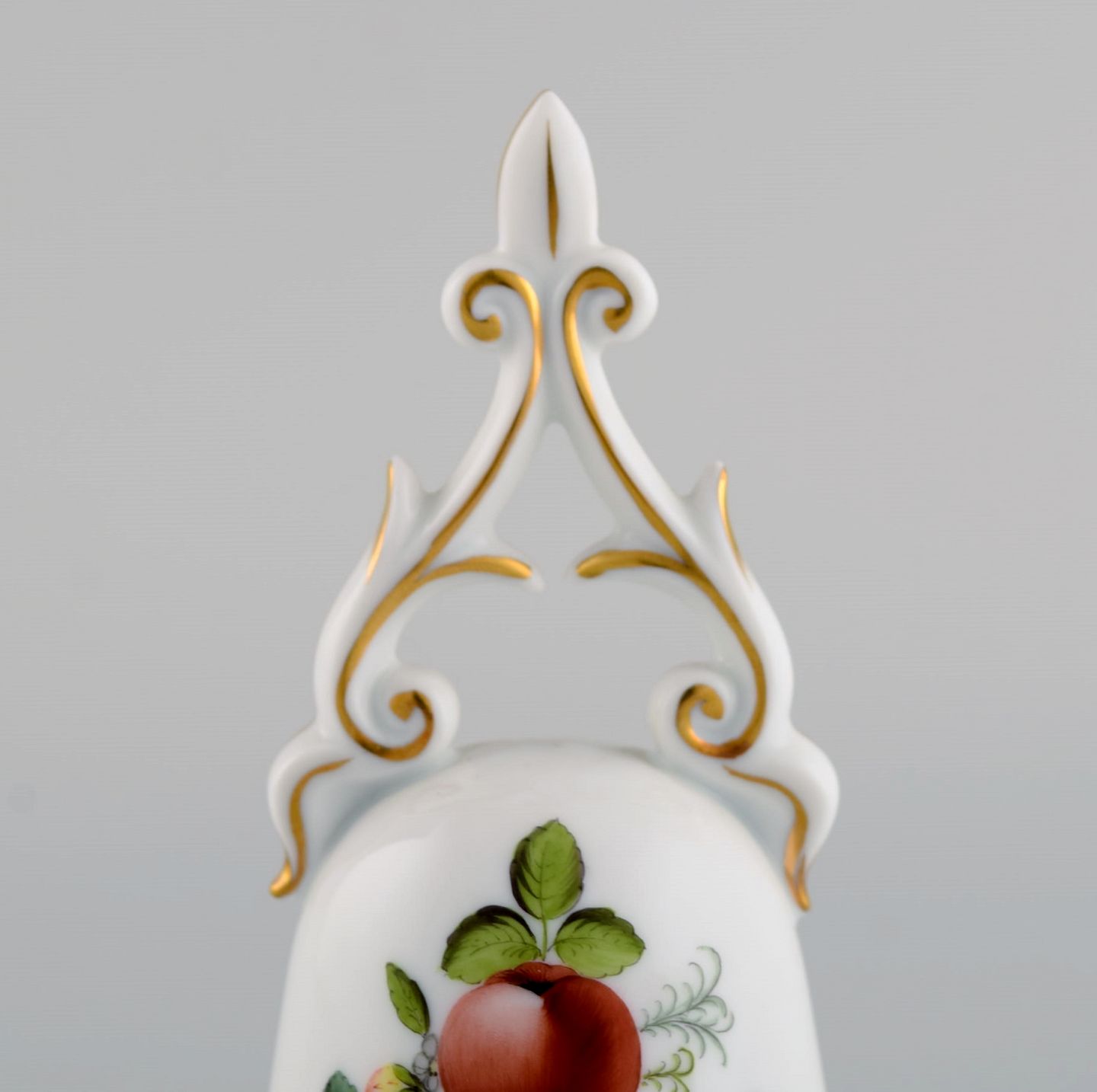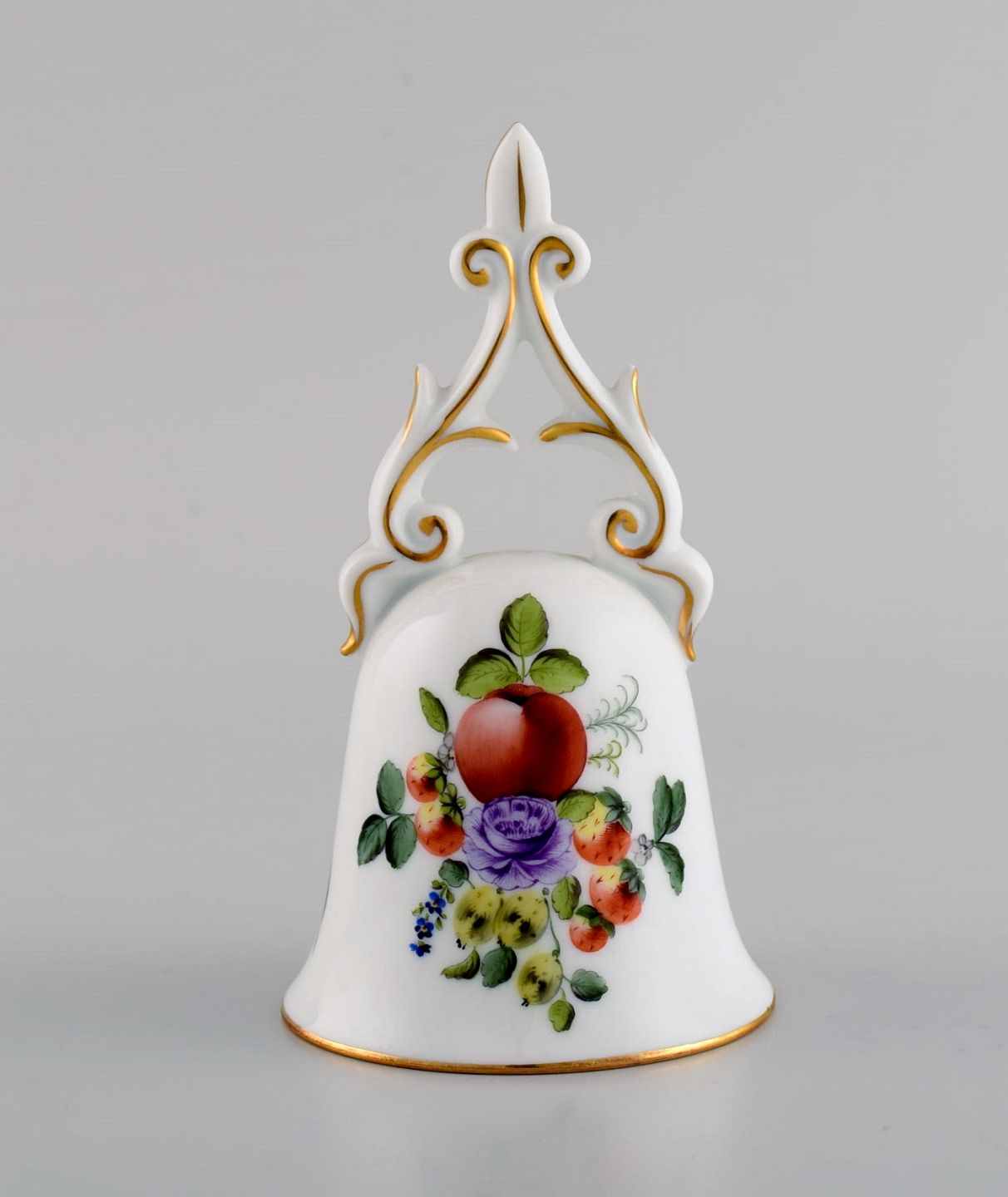 Herend table bell in hand-painted porcelain with flowers and gold decoration. 1980s. Measures: 12.5 x 7 cm. In excellent condition. Stamped.