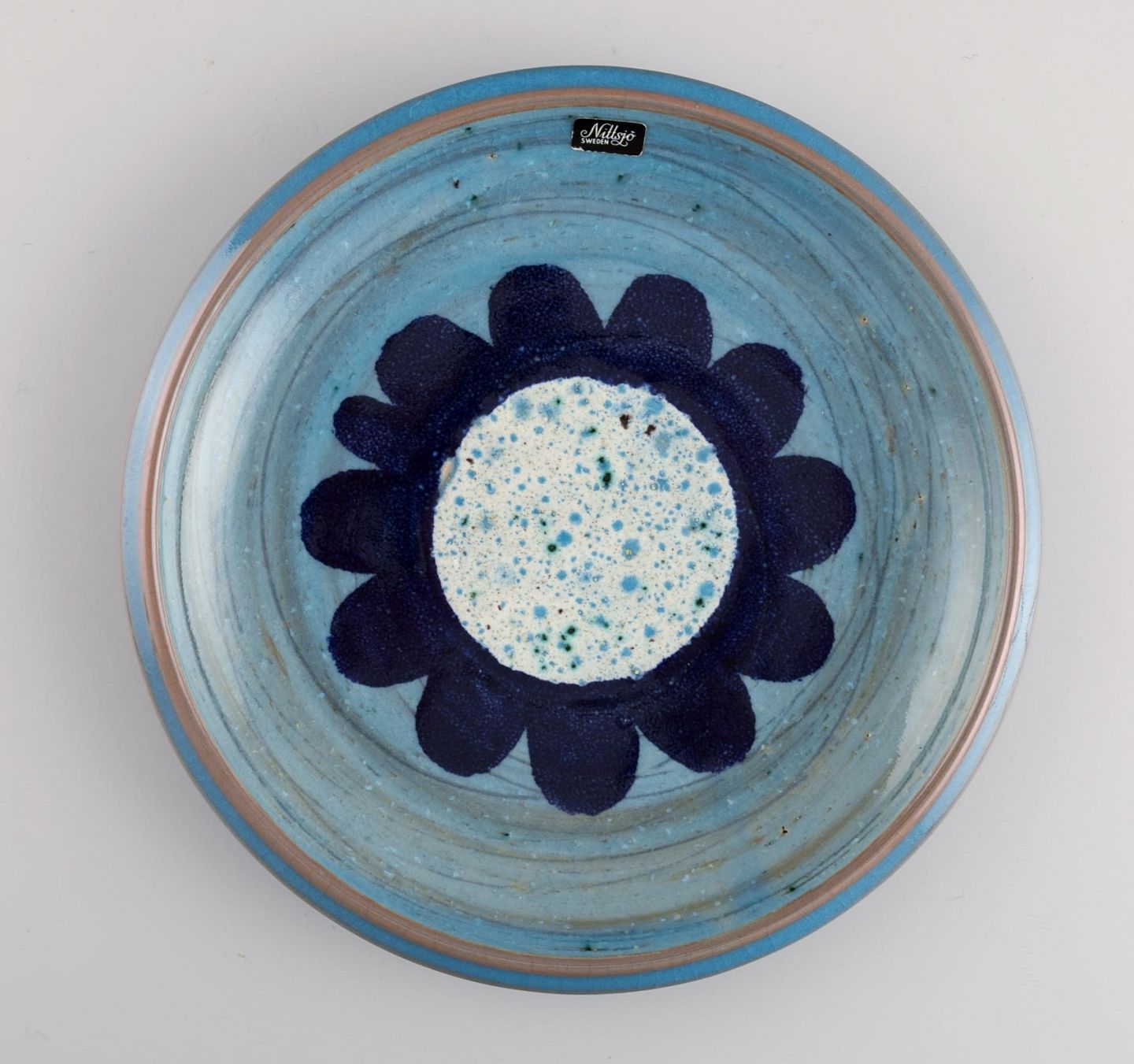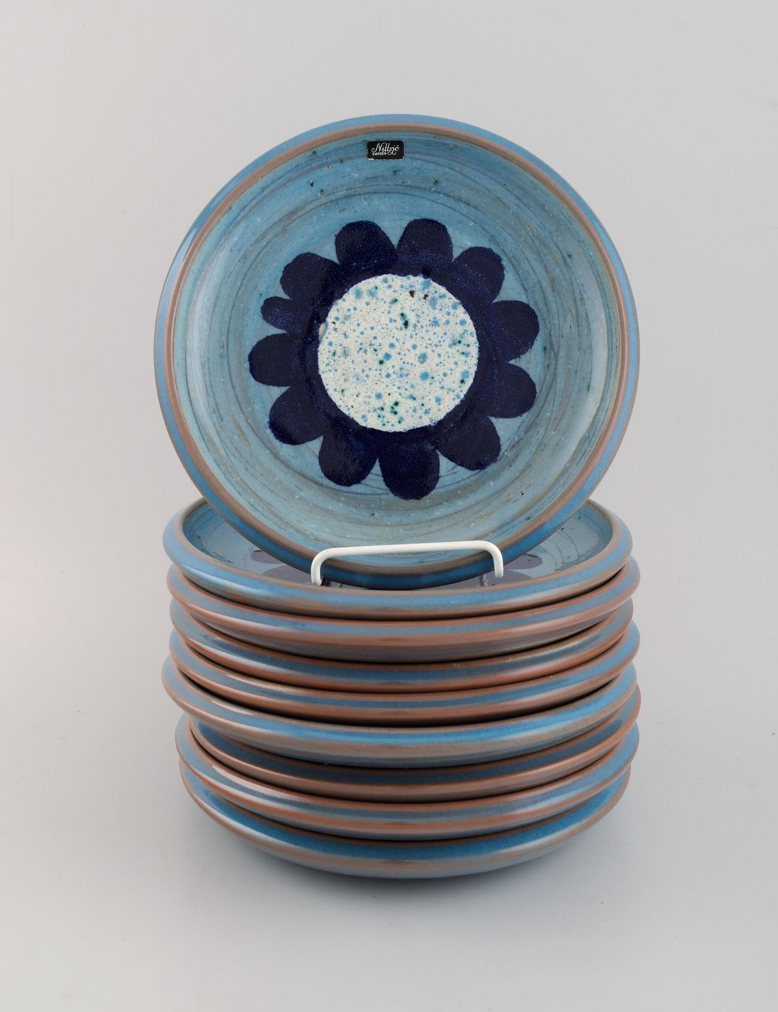 Nittsjö, Sverige. Ni retro tallerkener i glaseret stentøj. Smuk glasur i lyse blå nuancer. 1960'erne. Diameter: 20,5 cm. I flot stand. Stemplet.
