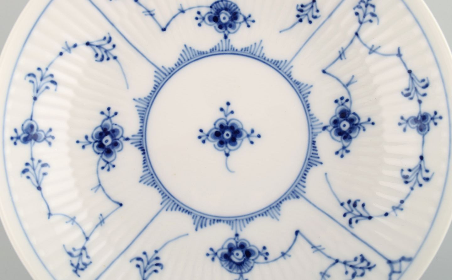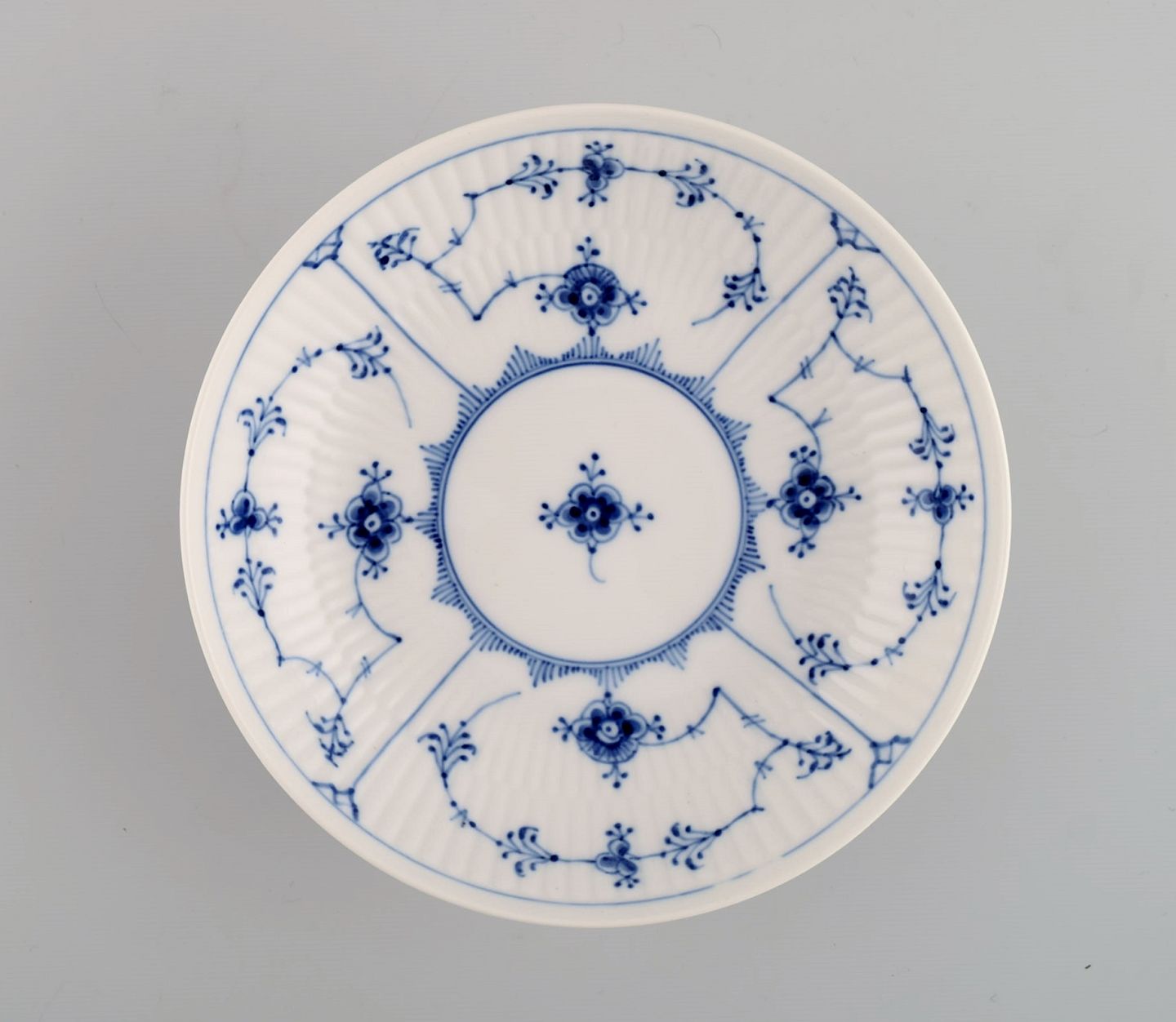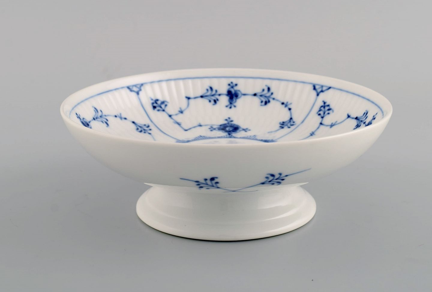 Royal Copenhagen Blue fluted Plain bowl on foot. Model number 1/18. Dated 1949. Measures: 17.5 x 6.5 cm. Stamped. 1st factory quality.