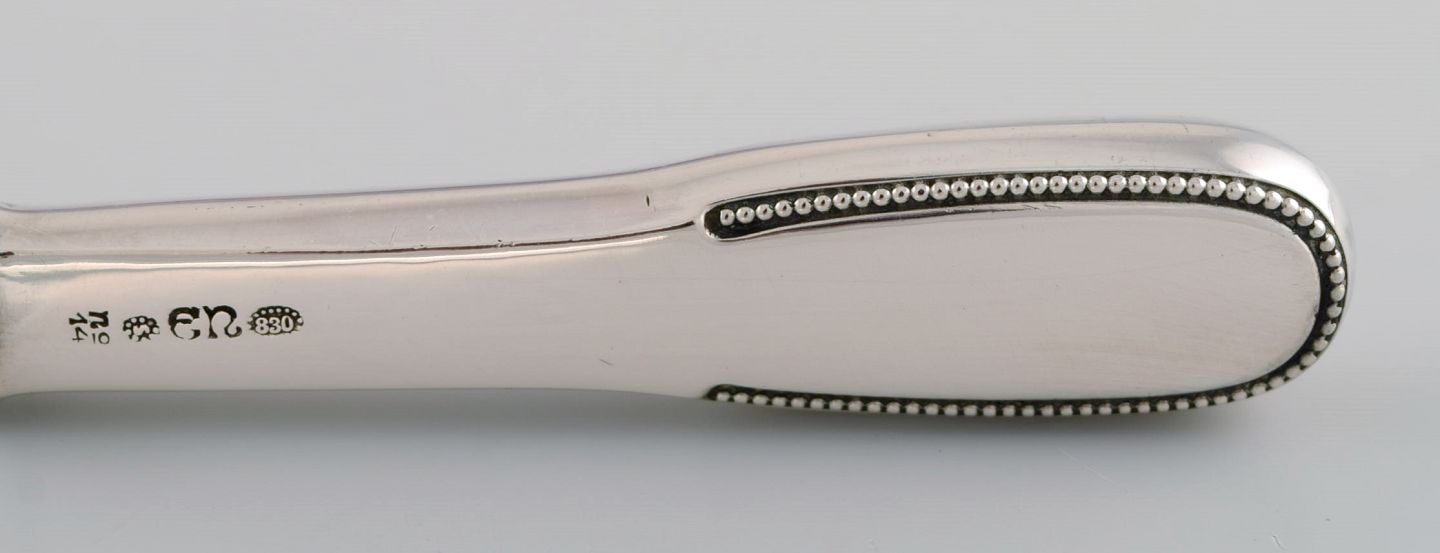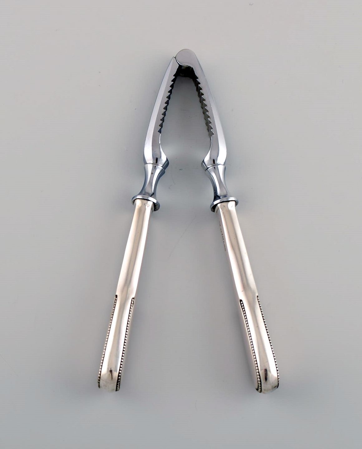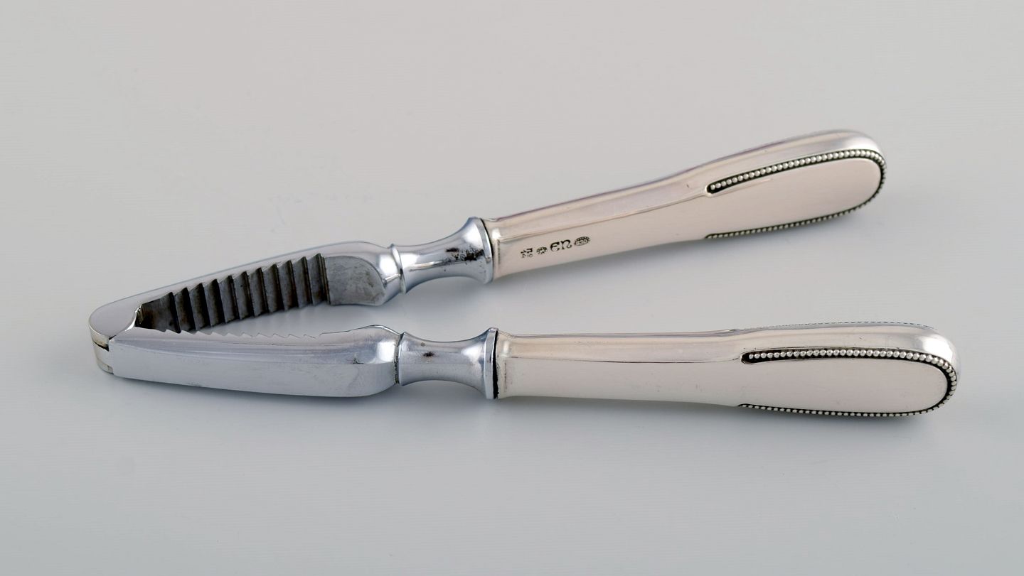 Evald Nielsen nummer 14 nøddeknækker i hammerslået sølv (830) og rustfrit stål. 1920'erne. To stk på lager.