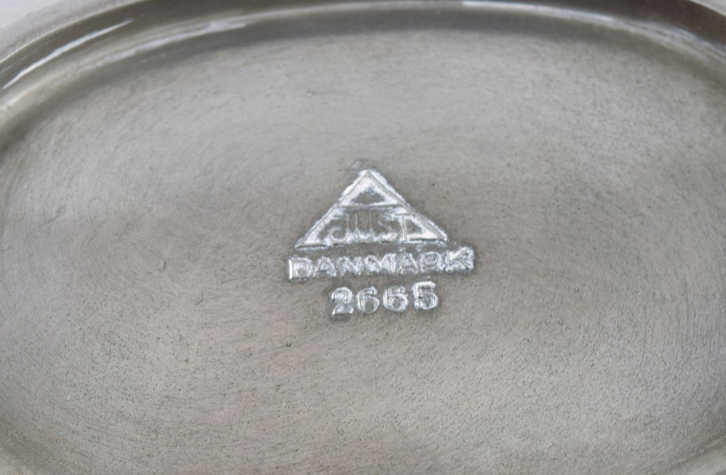Just Andersen. Skål / fad i tin. 1940/50'erne. Modelnummer 2665. Måler: 19 x 3,5 cm. Stemplet. I flot stand.
