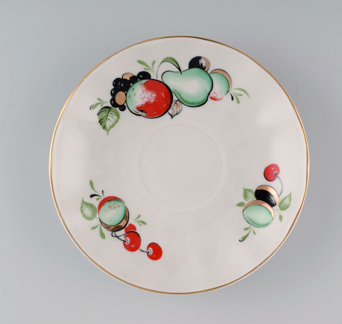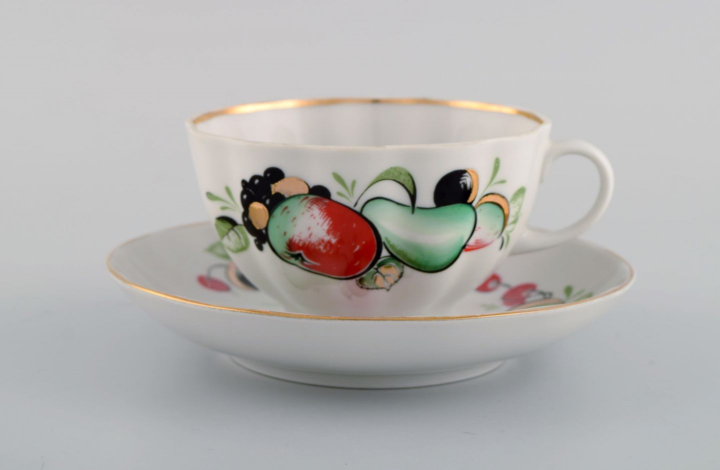 Den kejserlige Lomonosov porcelænsfabrik, Sovjetunionen. Stort teservice i håndmalet porcelæn til seks personer. Midt 1900-tallet.