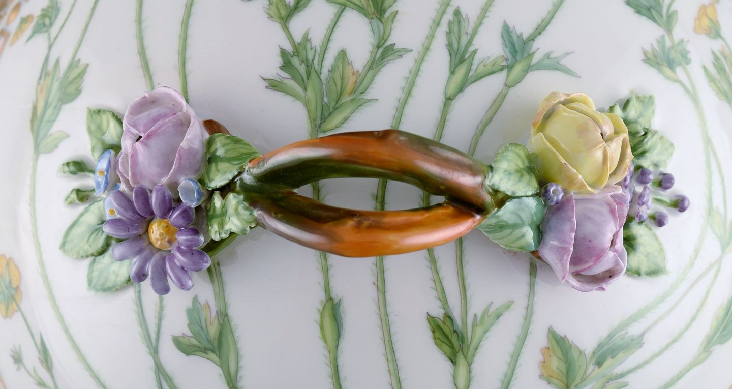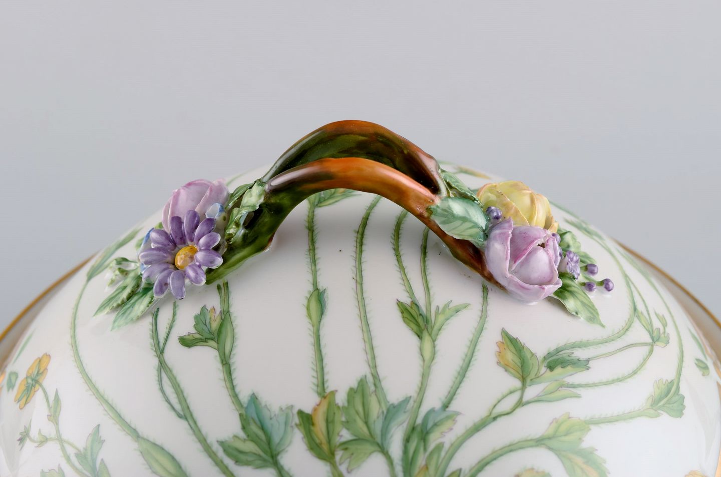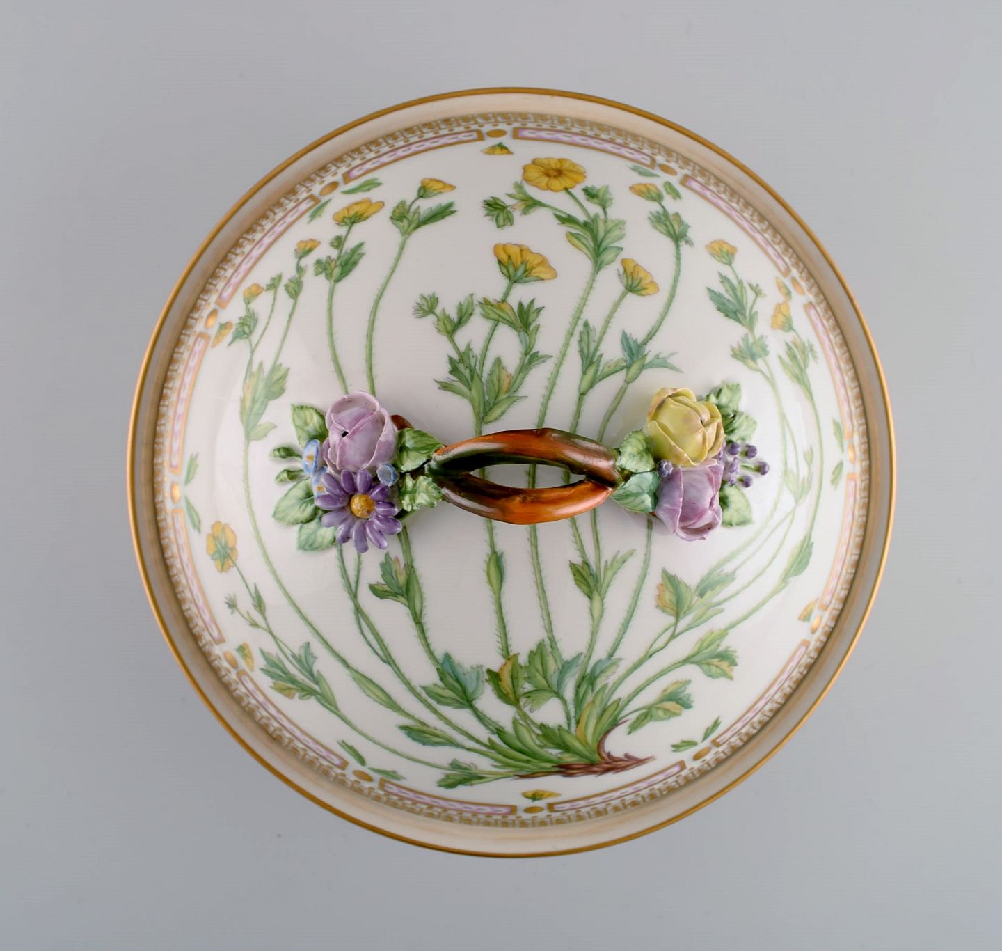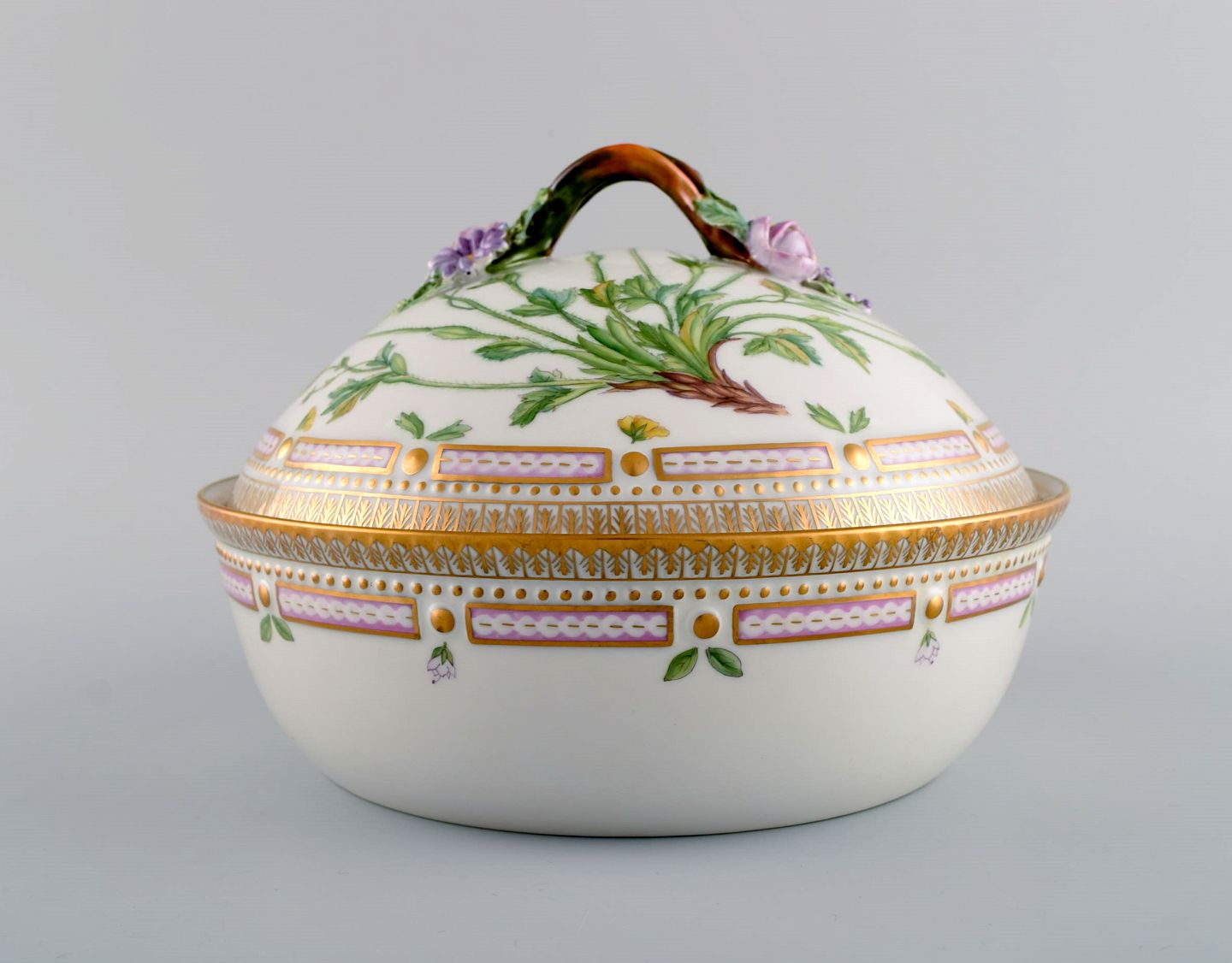 Royal Copenhagen/ Kgl. Porcelæn. Flora Danica stor terrin/lågfad, grenformet hank, pousserede blomster. Dessin nr. 20/3568. Måler: 23,5 x 17,5 cm. 1. sortering. I perfekt stand.